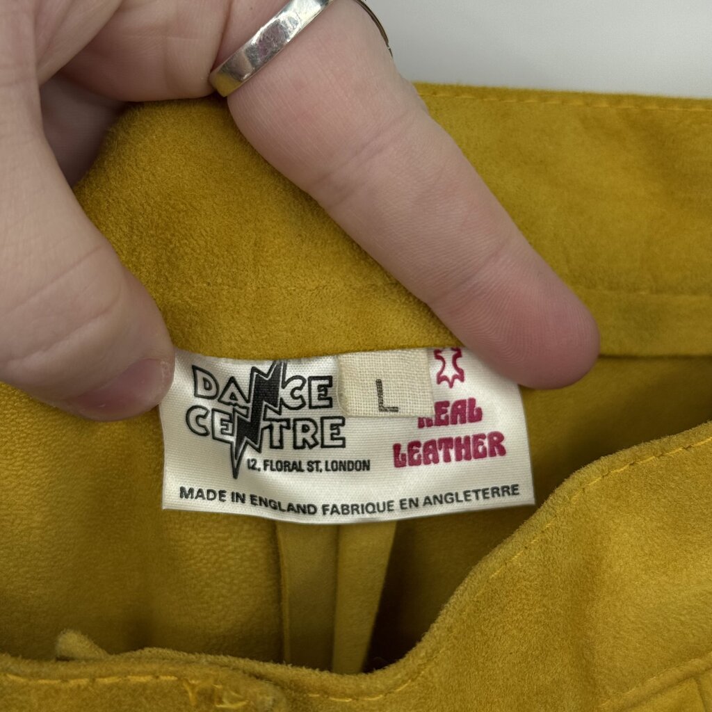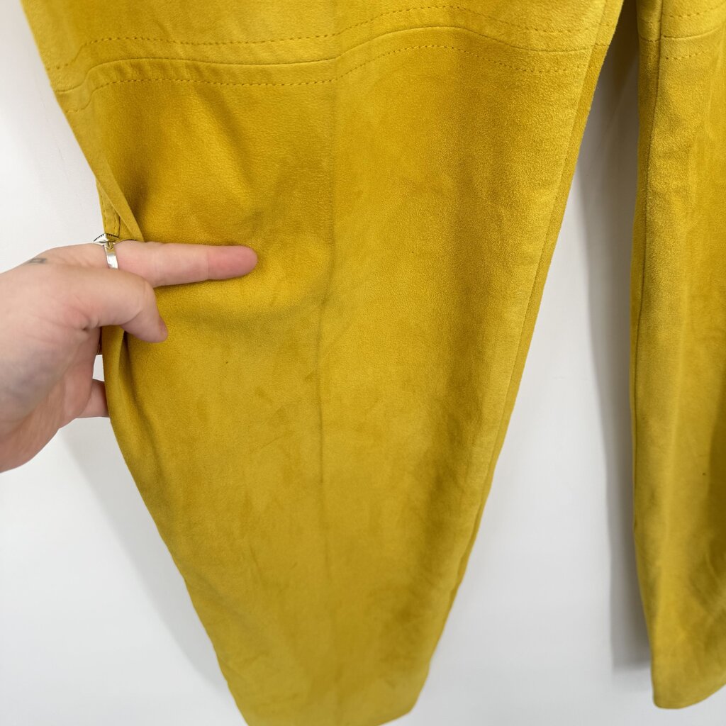 women Dance Centre Suede Straight Leg Pants Mustard Yellow Vintage 6