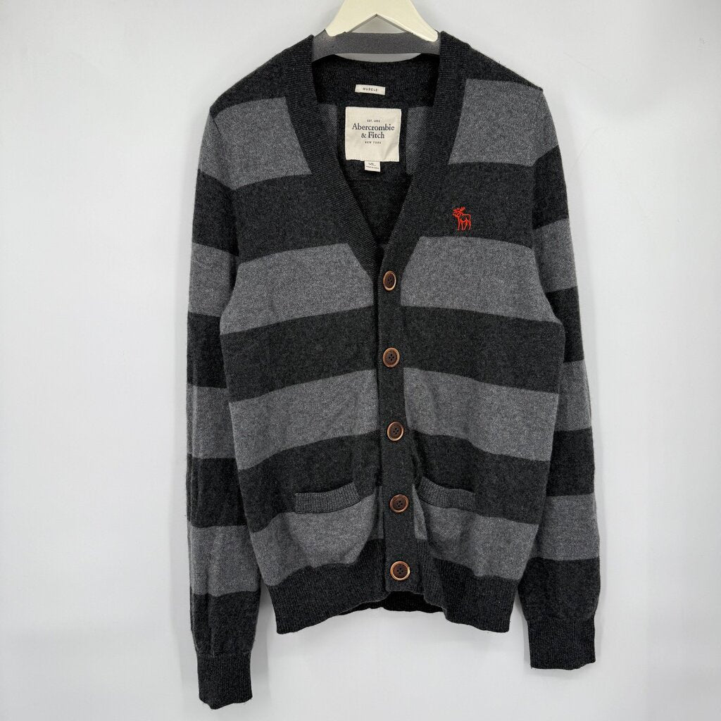 men Abercrombie & Fitch Vintage 90s Striped Cashmere Cardigan Gray Sweater XL