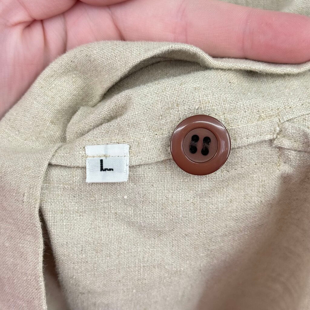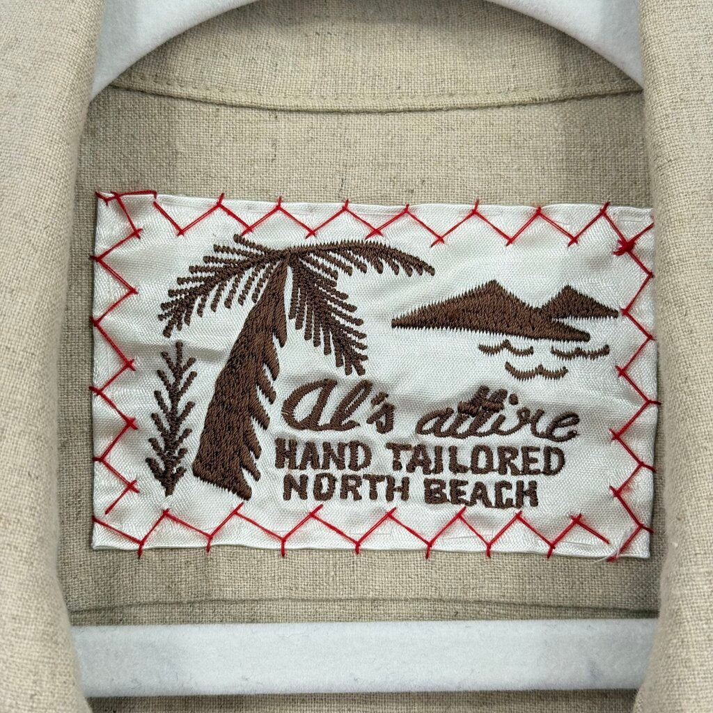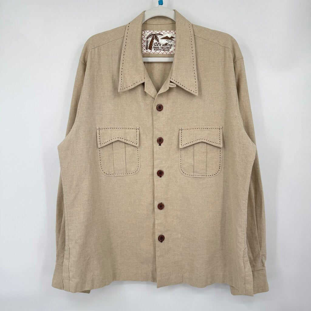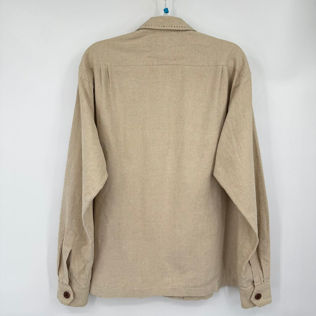 men Al's Attire Top Stitched Linen Safari Khaki Woven Top L