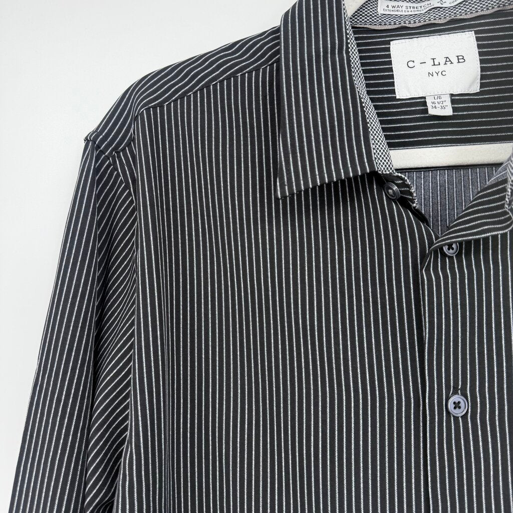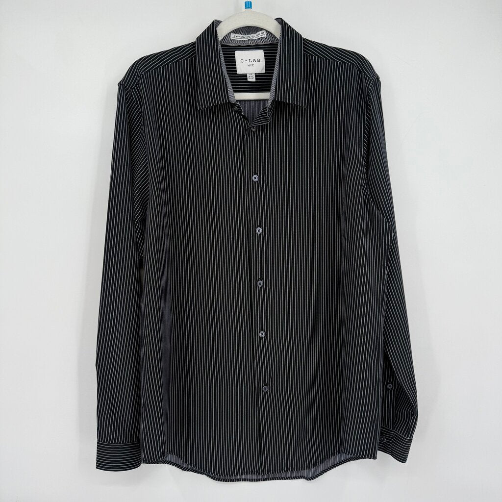 men C-Lab Pinstriped Dress Shirt Black White Woven Top L