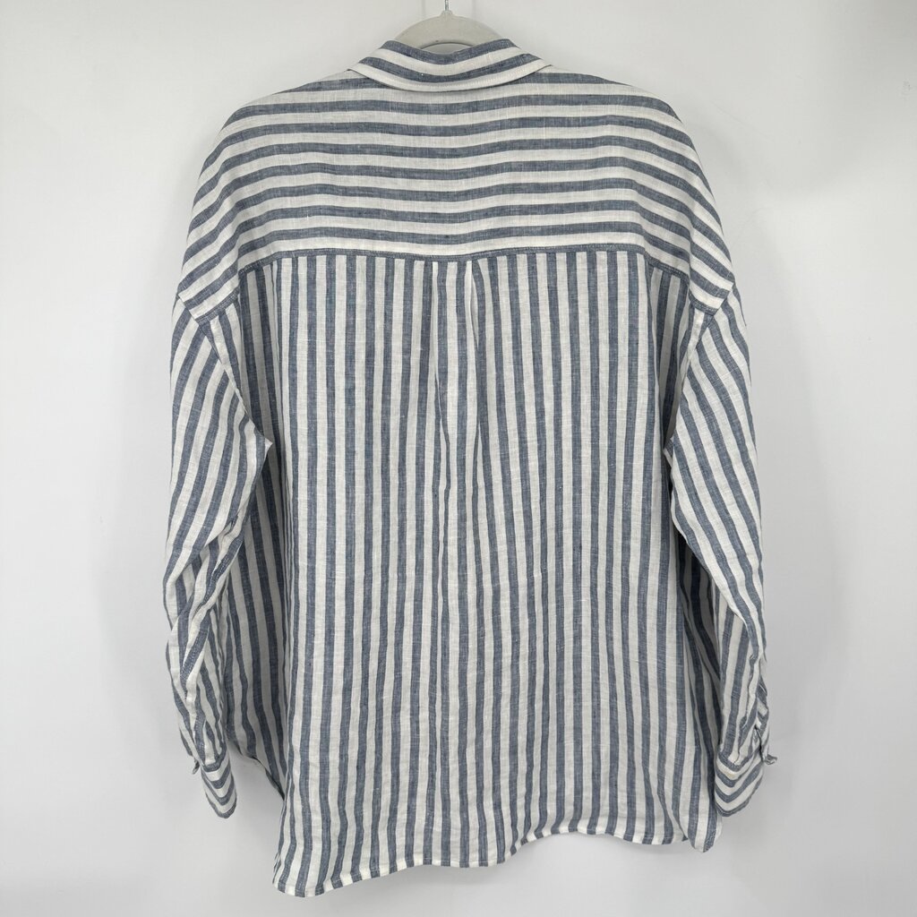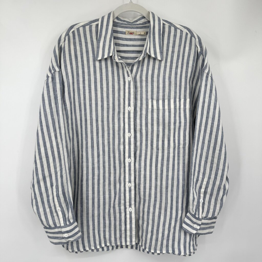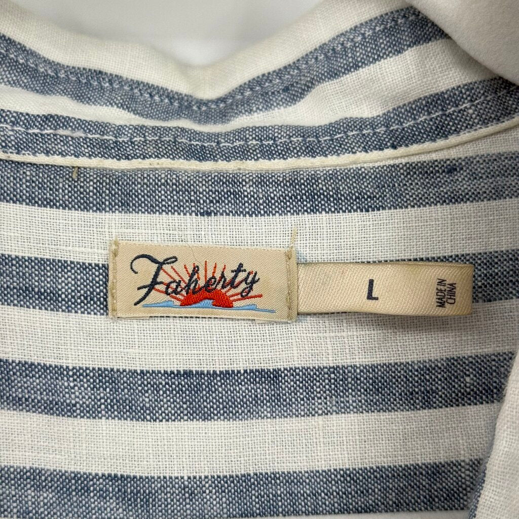 men Faherty Striped Linen Button Front Blue & White Woven Top L