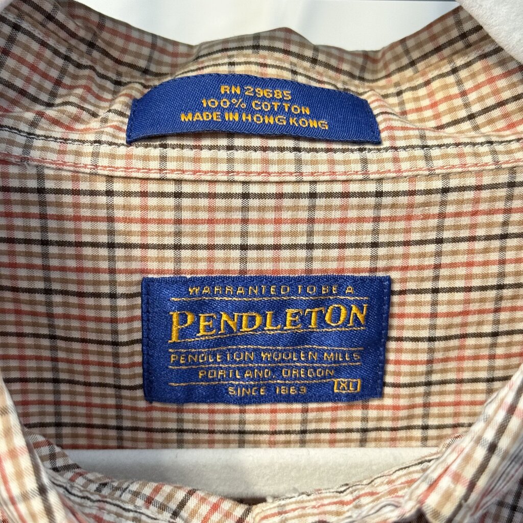 men Pendleton Cotton Grid Check White Black Brown Red Woven Top XL