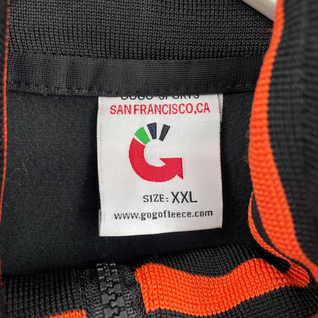 men San Francisco San Fran Track Jacket - AS IS Shoulder Seams Black Orange Yellow Jacket XXL