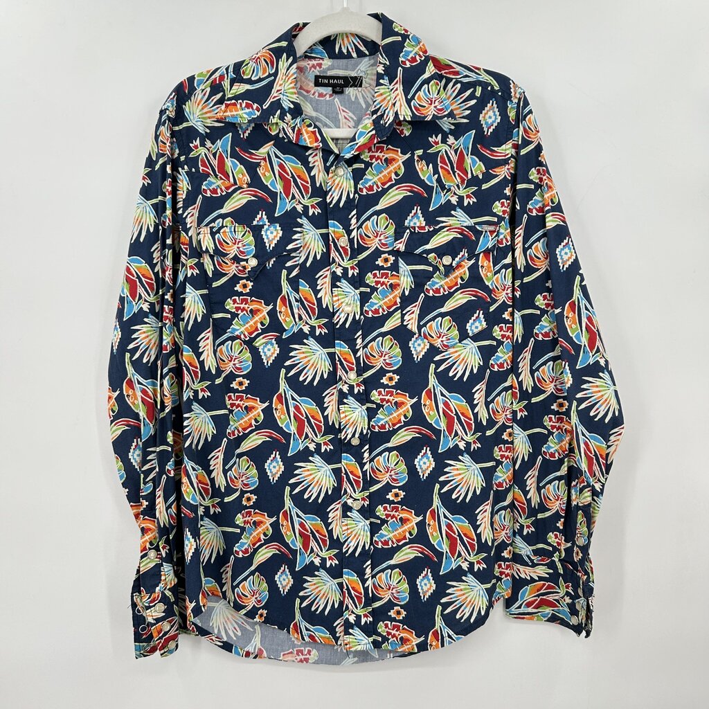 men Tin Haul Patterned Snap Western Blue Woven Top S