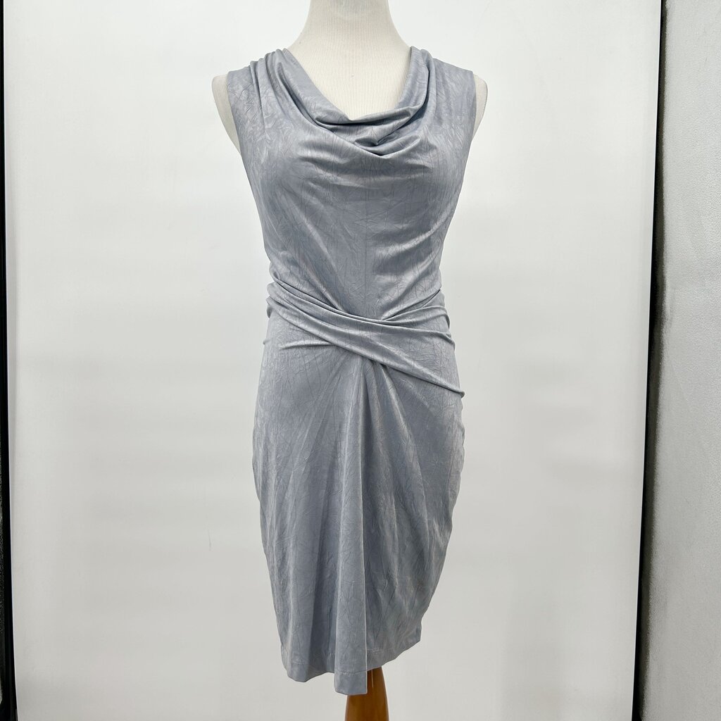 women Aidean Mattox Knit Draped Sleeveless Mist Blue Dress 10