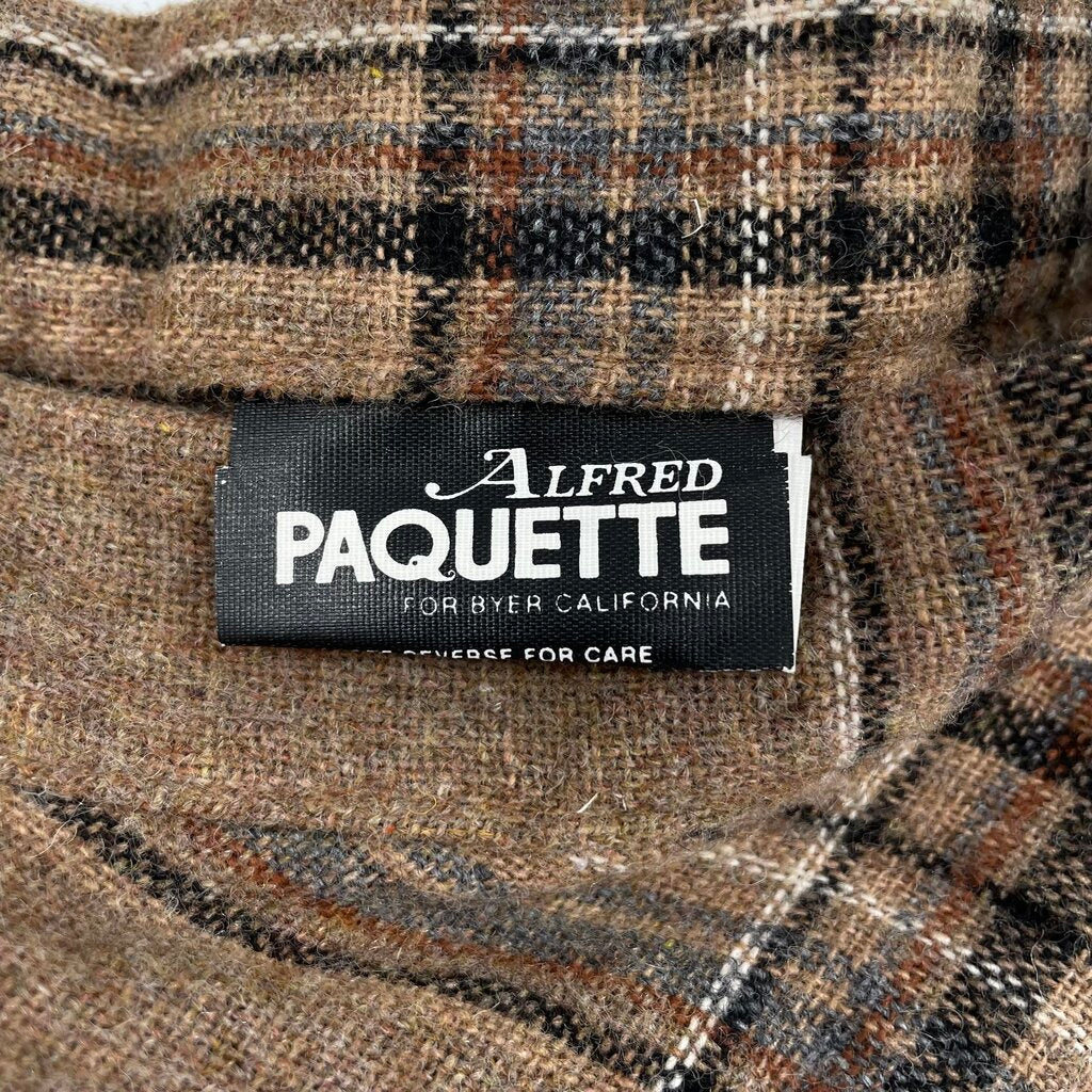 women Alfred Paquette Vintage Wool Pleated Plaid Tan Black White Skirt S