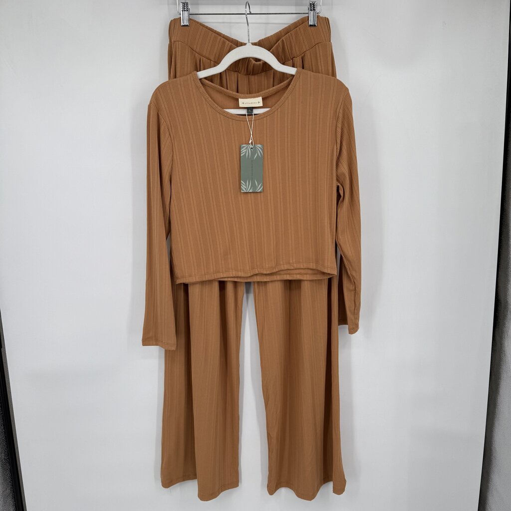 New with tags, unworn. Long sleeve cropped ribbed top with ribbed wide leg bottoms. Bust 42", Total Top Length 18", Waist 34", Rise 15", Inseam 32"