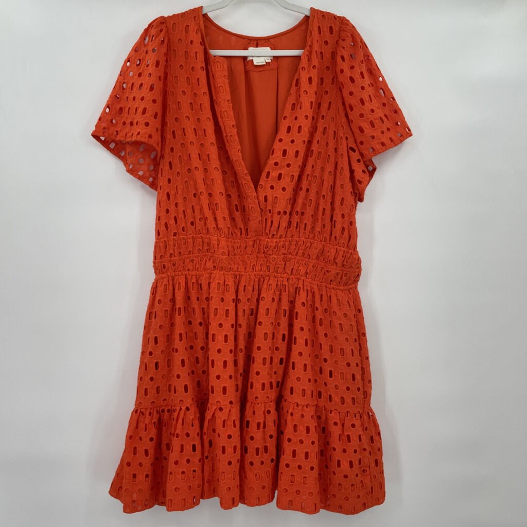 women Anthropologie Mini Somerset Eyelet Edition Hot Bright Coral Dress 3X