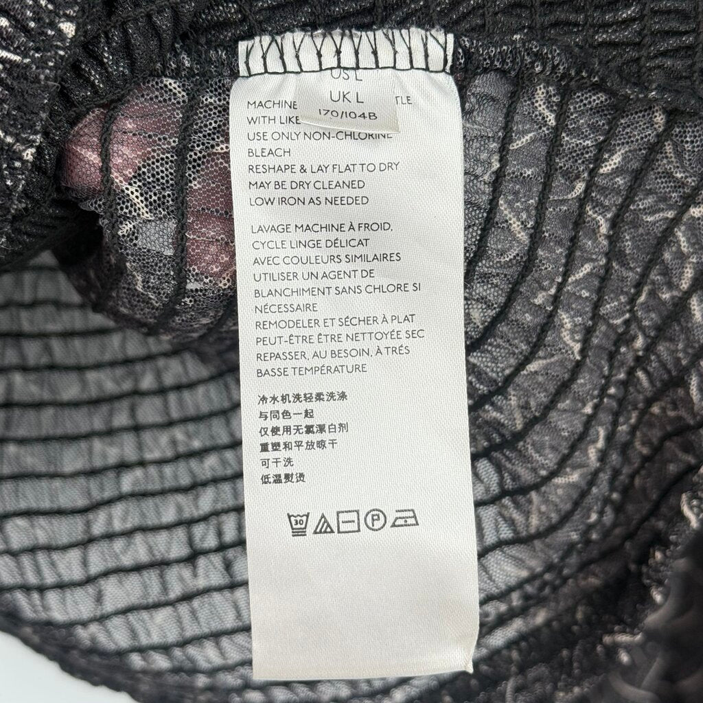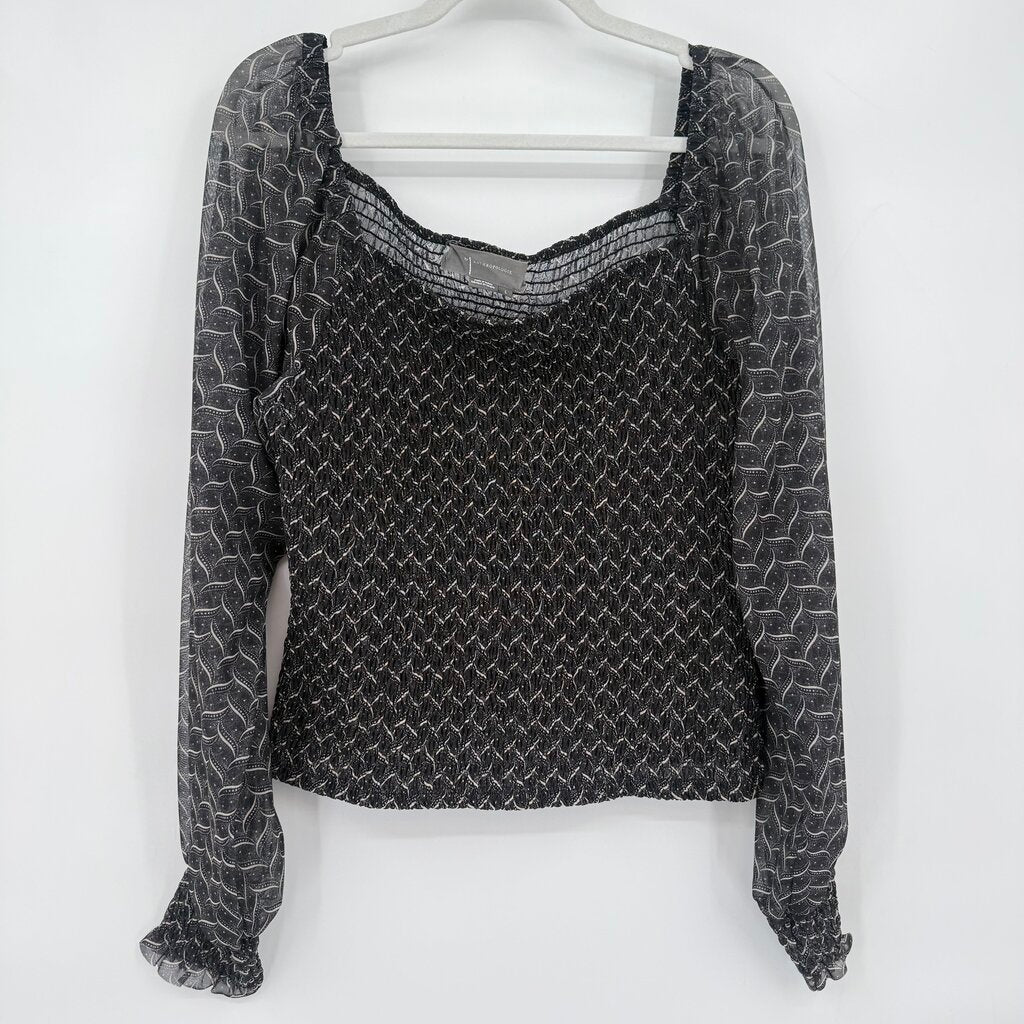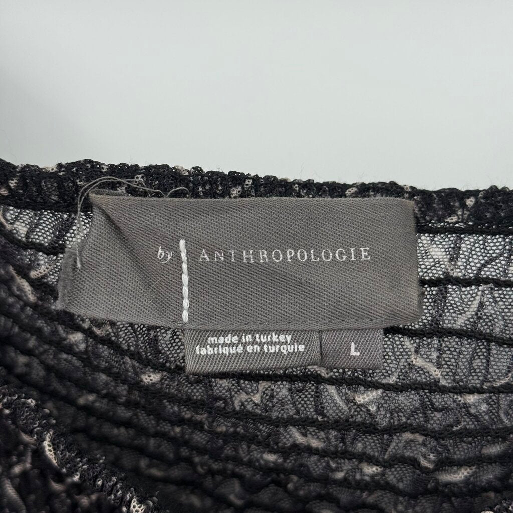 women Anthropologie Smocked Print Long Sleeve Gray Woven Top L