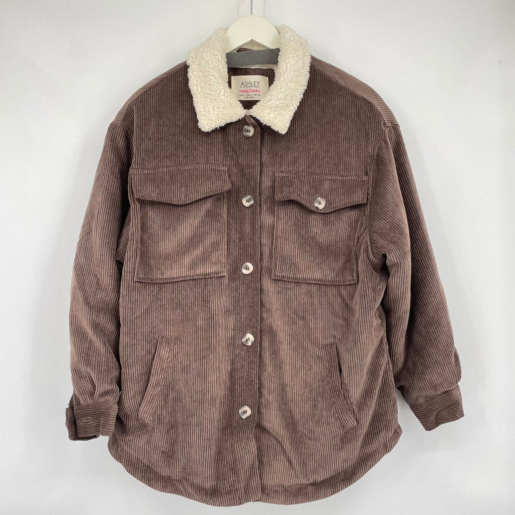 women Ashley Faux Shearling Corduory Brown Jacket L