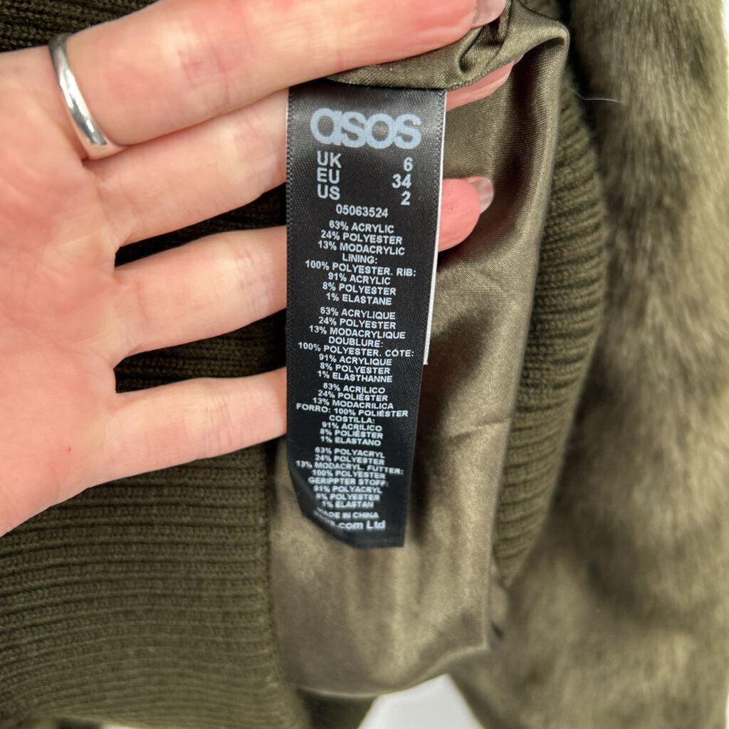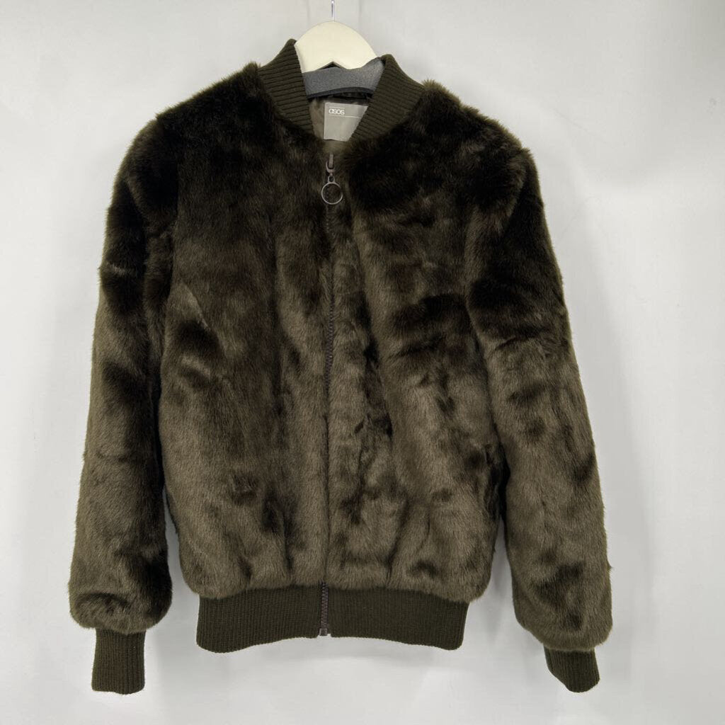 women ASOS Faux Fur Bomber Dark Olive Green Jacket 2