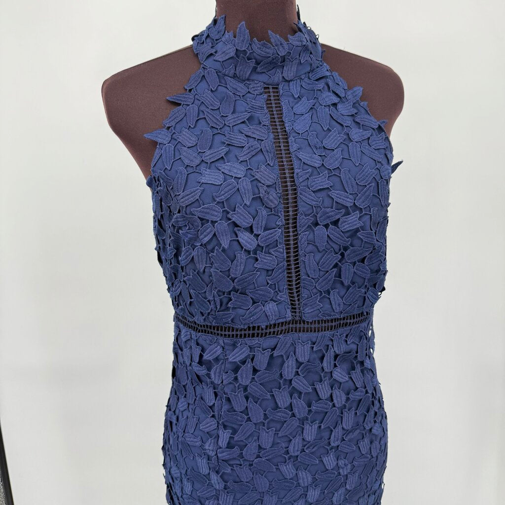 women Bardot NWT Gemma Lace Halter Neck Cocktail Blue Ink Dress 8