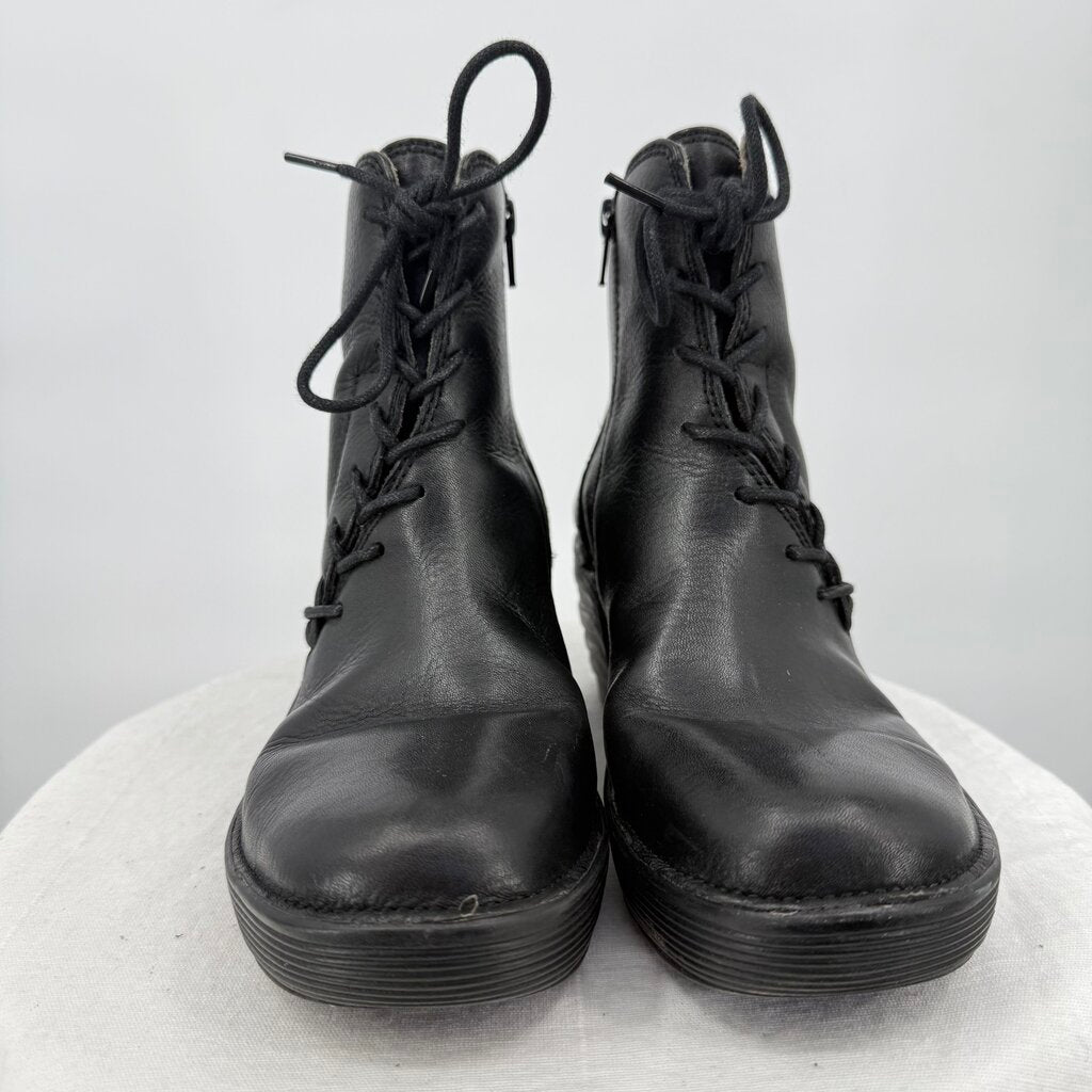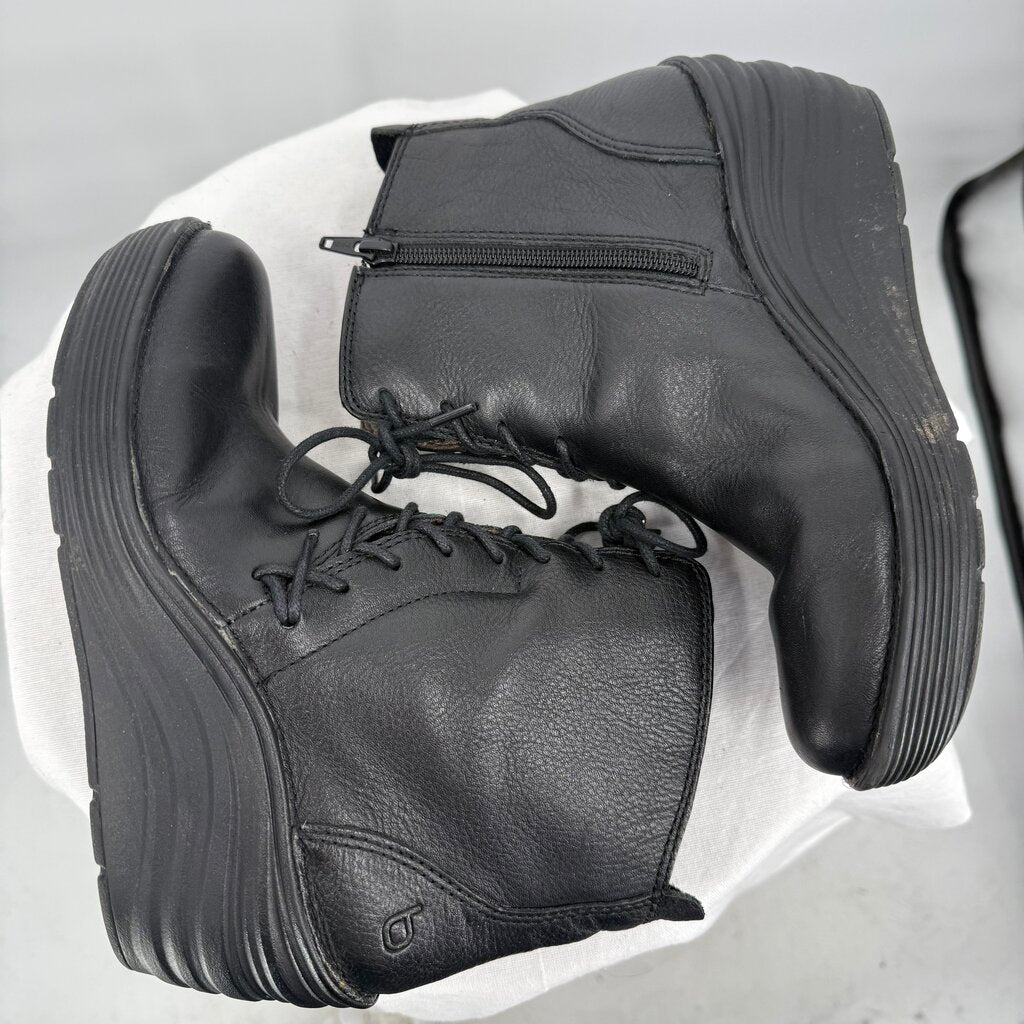 women Bionica Corset Leather Wedge Boots Black Shoes 8