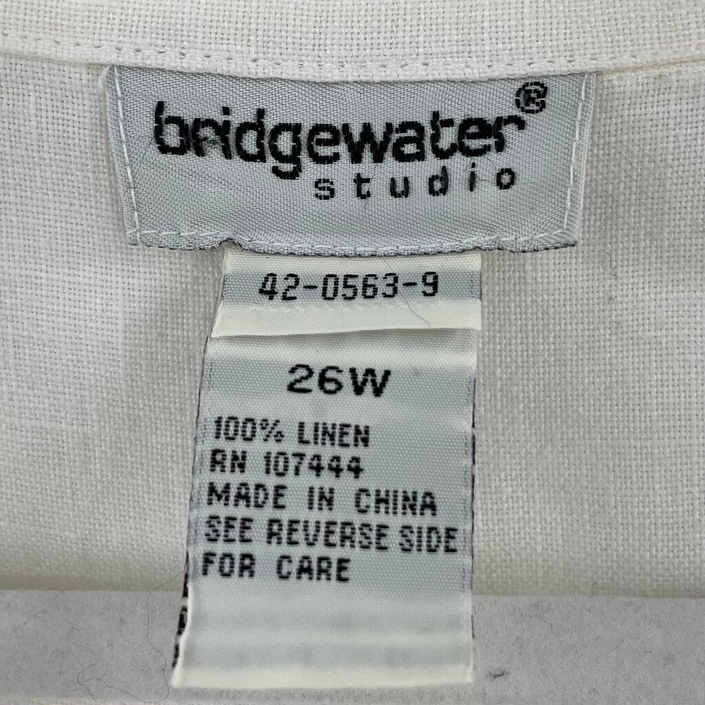 women Bridgewater Studio Linen Button Front White Woven Top 26W