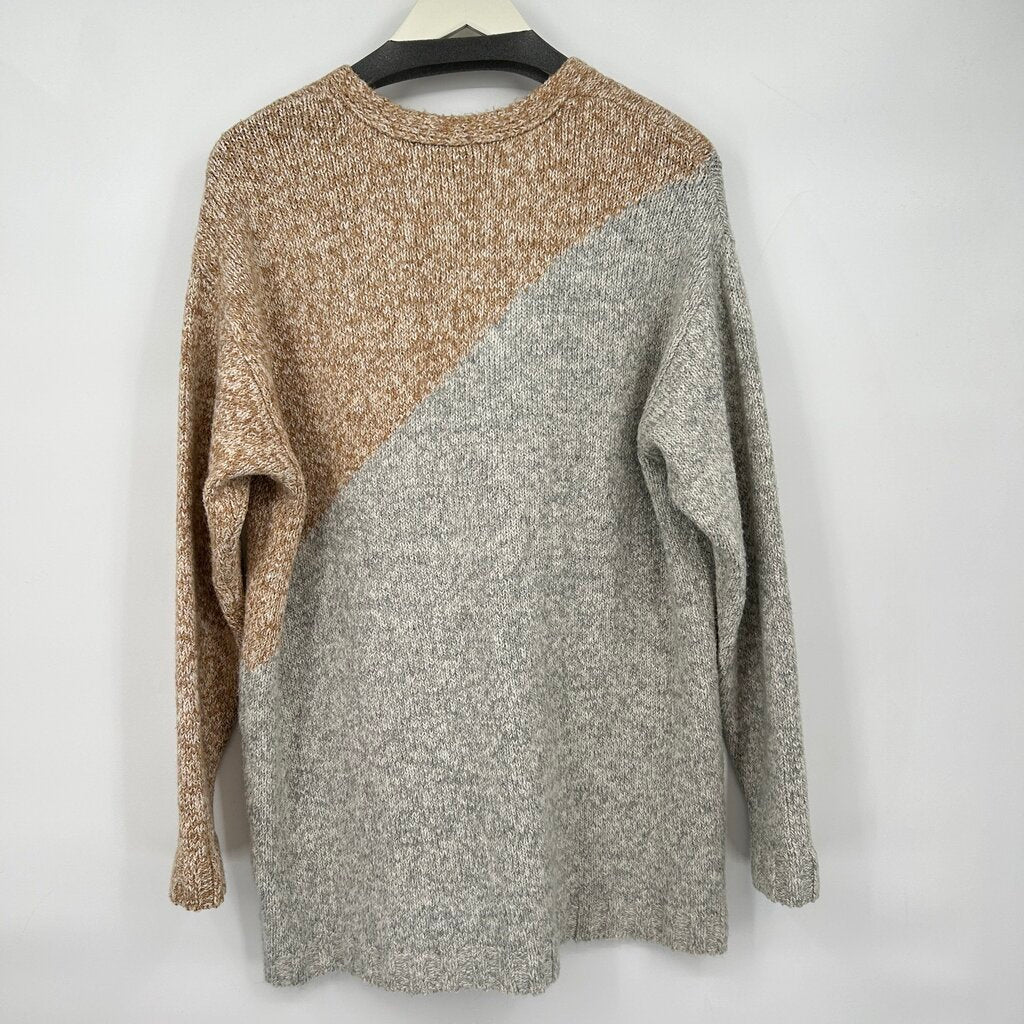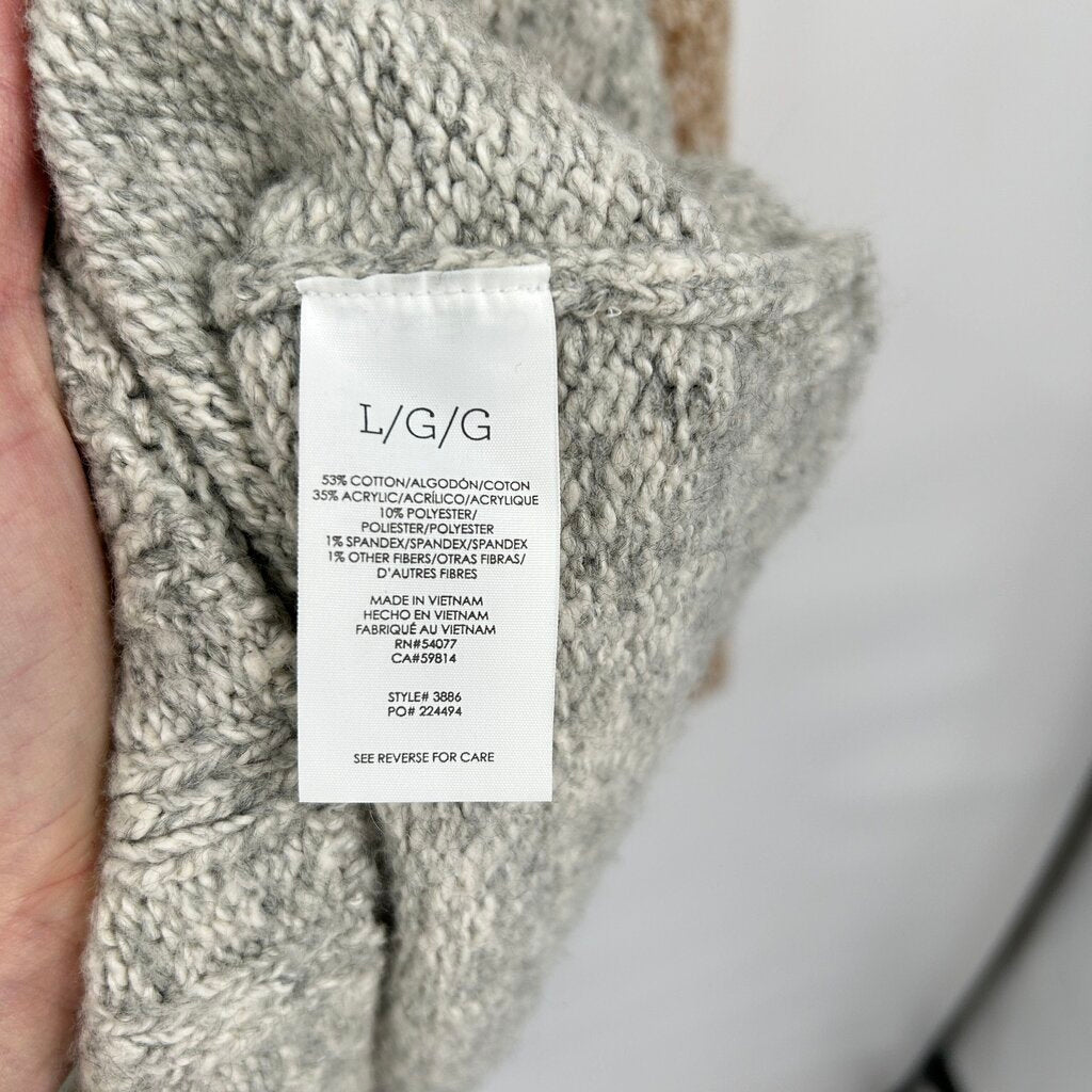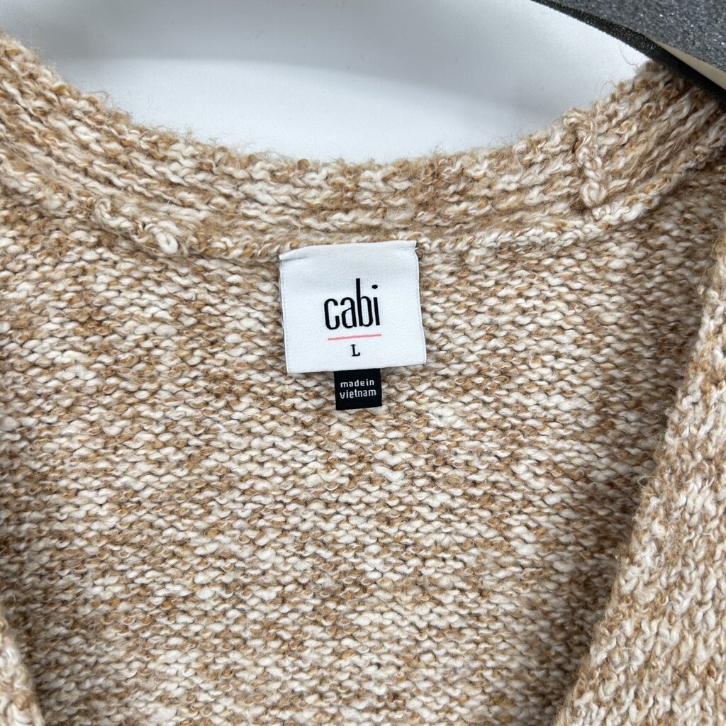 women Cabi Cotton Blend Cardigan Gray Tan Sweater L