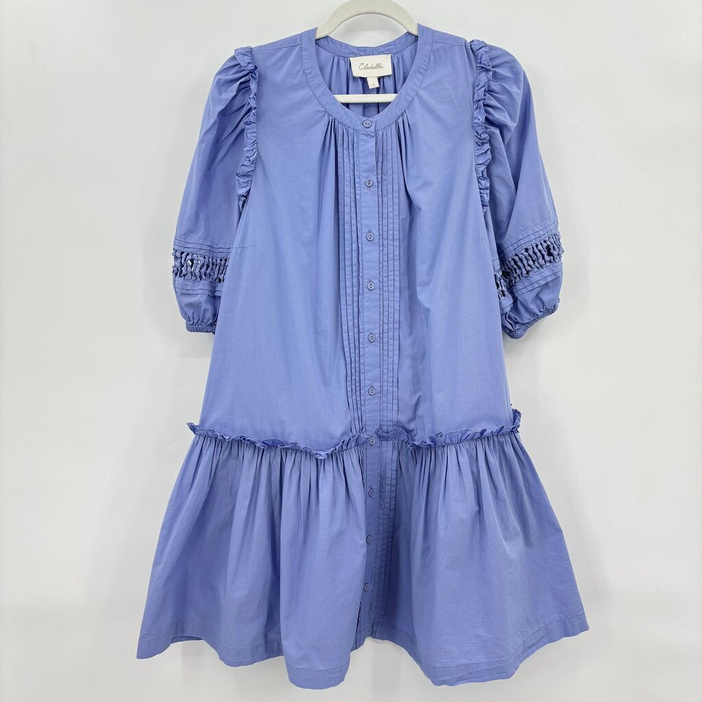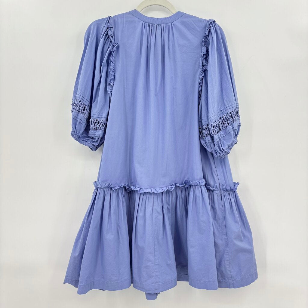 women Cleobella Dolly Ruffle Org Cotton Mini MSRP $228 Periwinkle Dress L