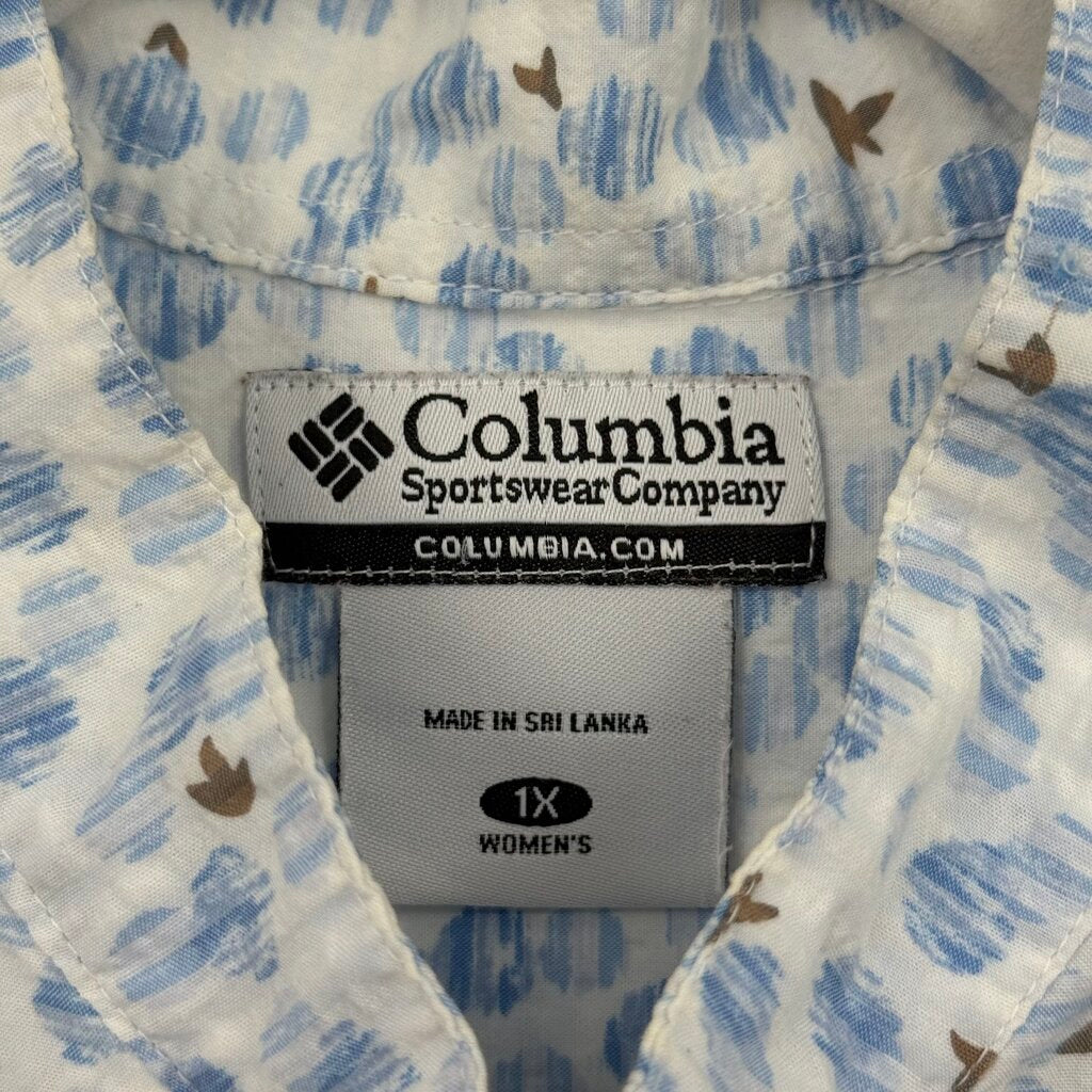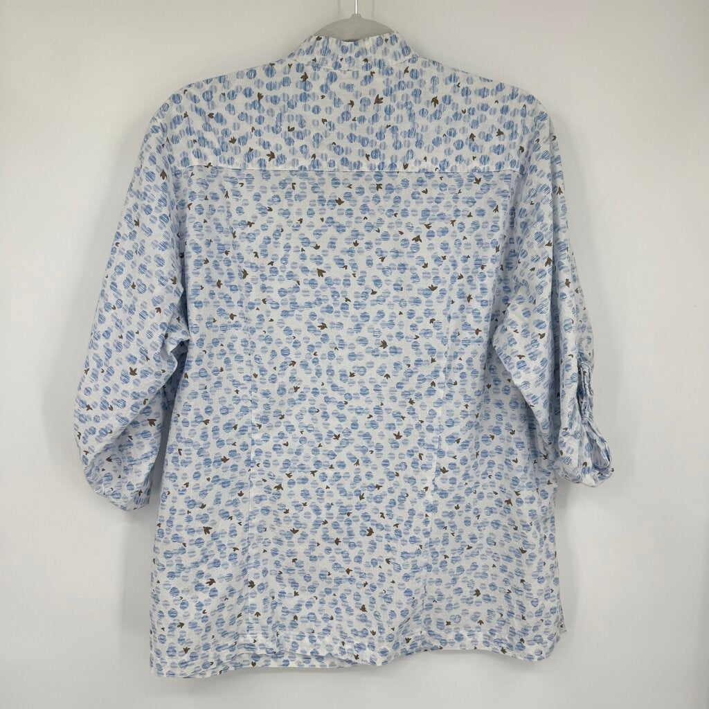women Columbia Bird & Circle Print Seersucker White & Blue Woven Top XL