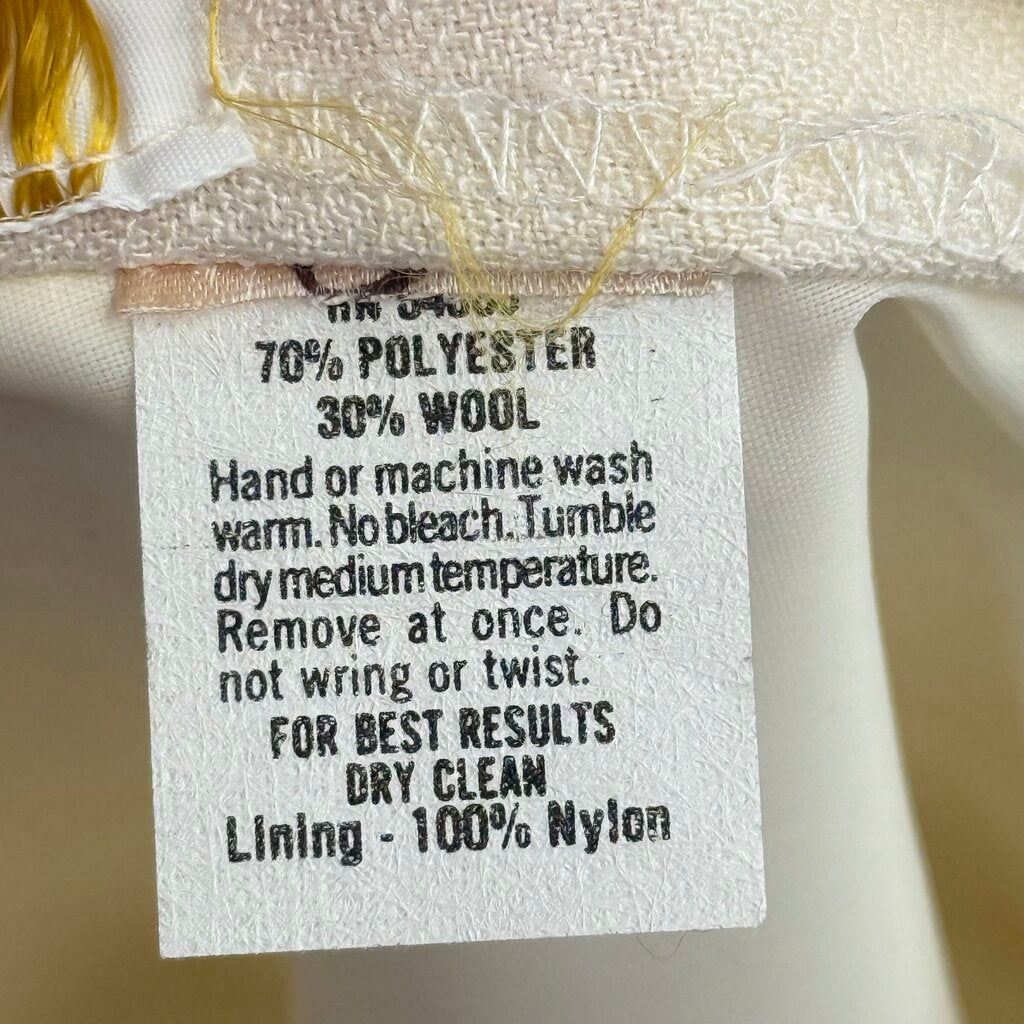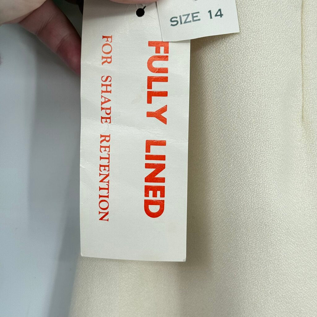New with tags. Lined. Belt loops. 70% polyester, 30% wool. Back zip and button closure. Tag size 14, but fits like a modern 6-8, see measurements for accurate sizing. Waist 29", Total Length 28.5"