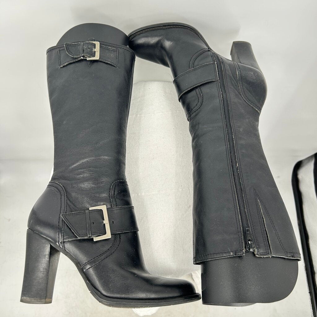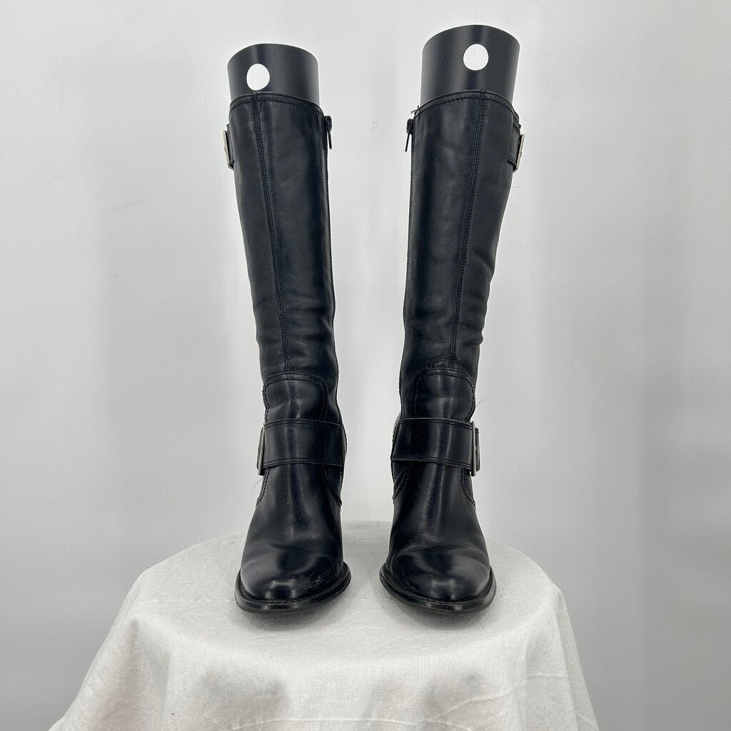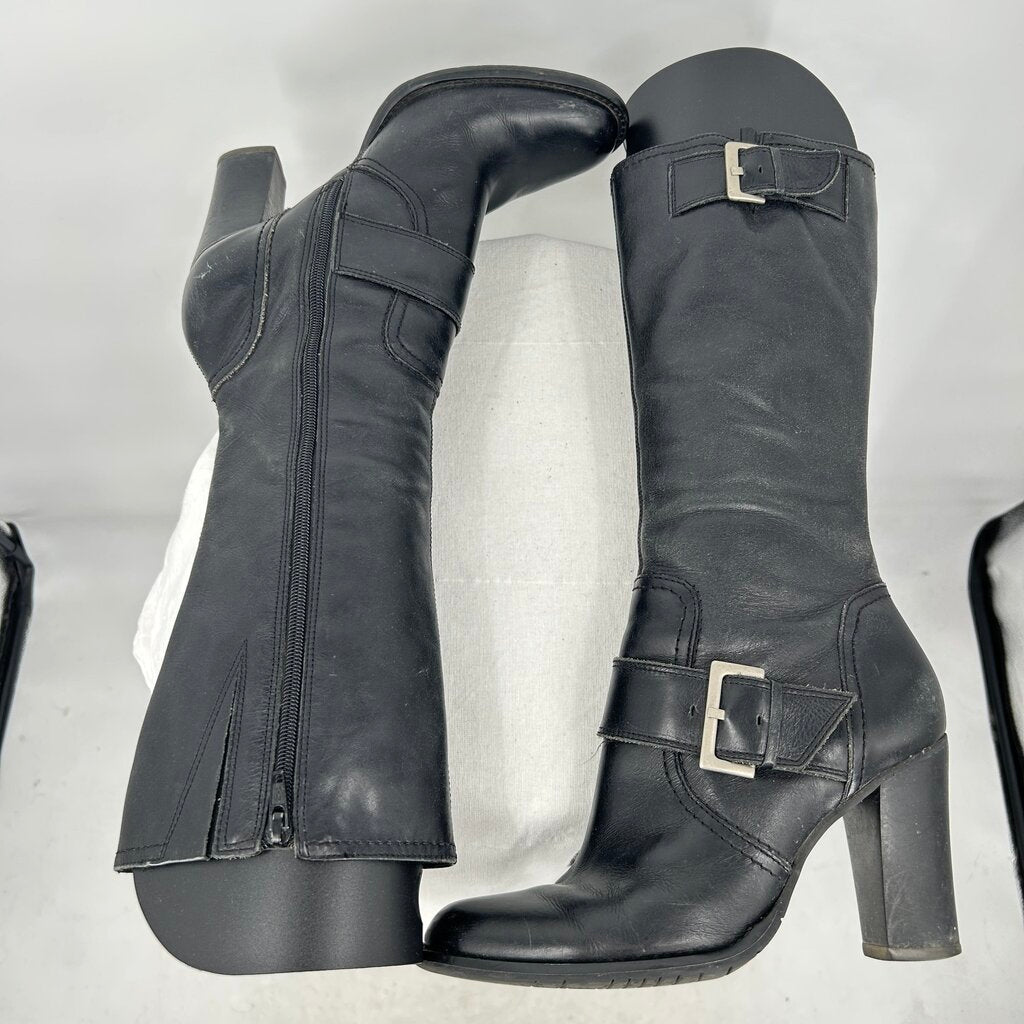 women Diba Adagio Buckled Leather Heeled Boot Black Shoes 7.5