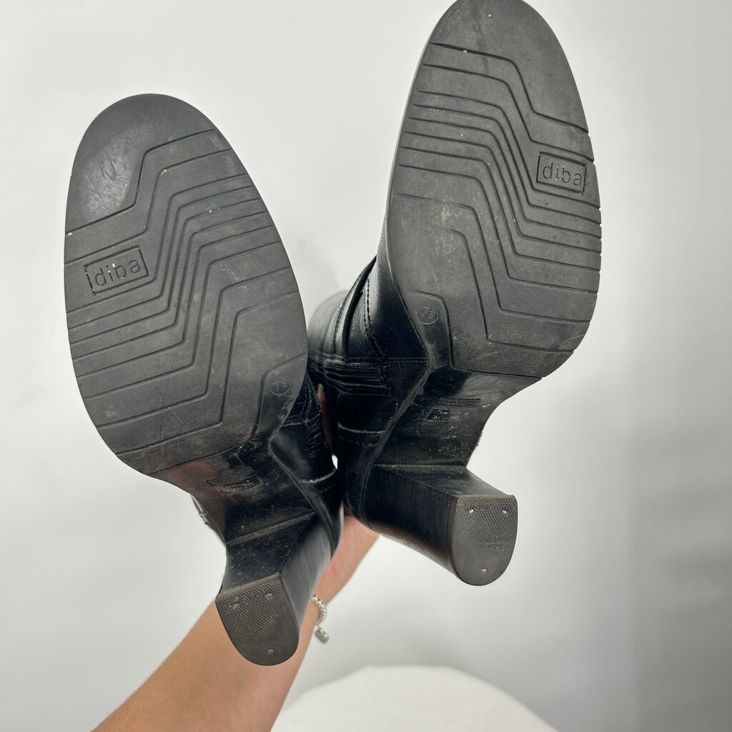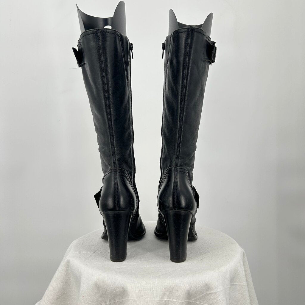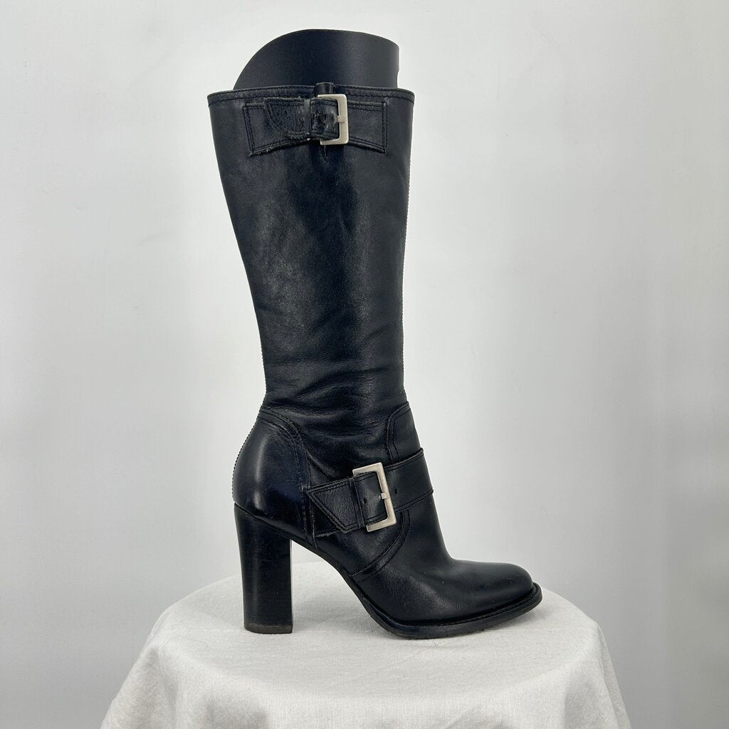women Diba Adagio Buckled Leather Heeled Boot Black Shoes 7.5