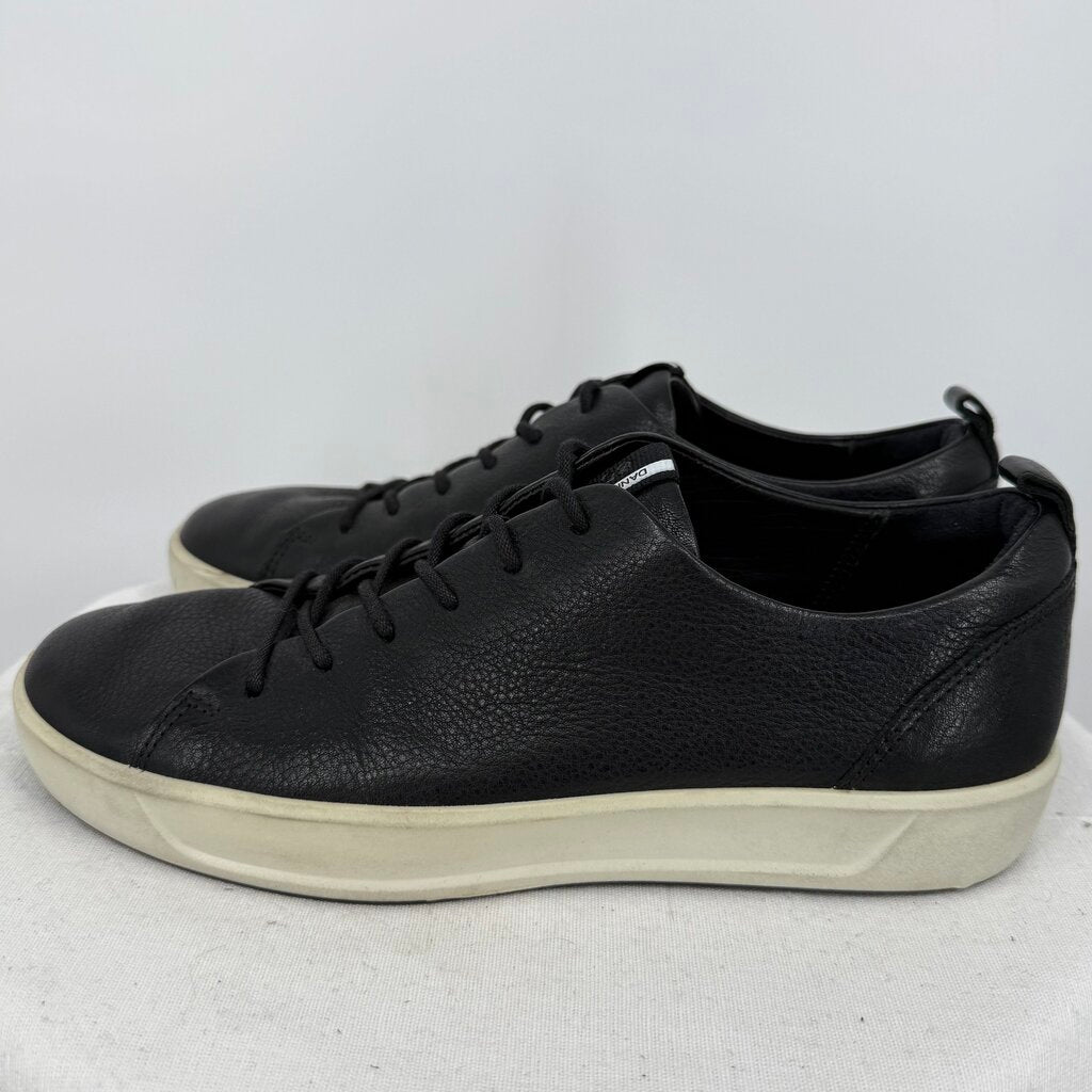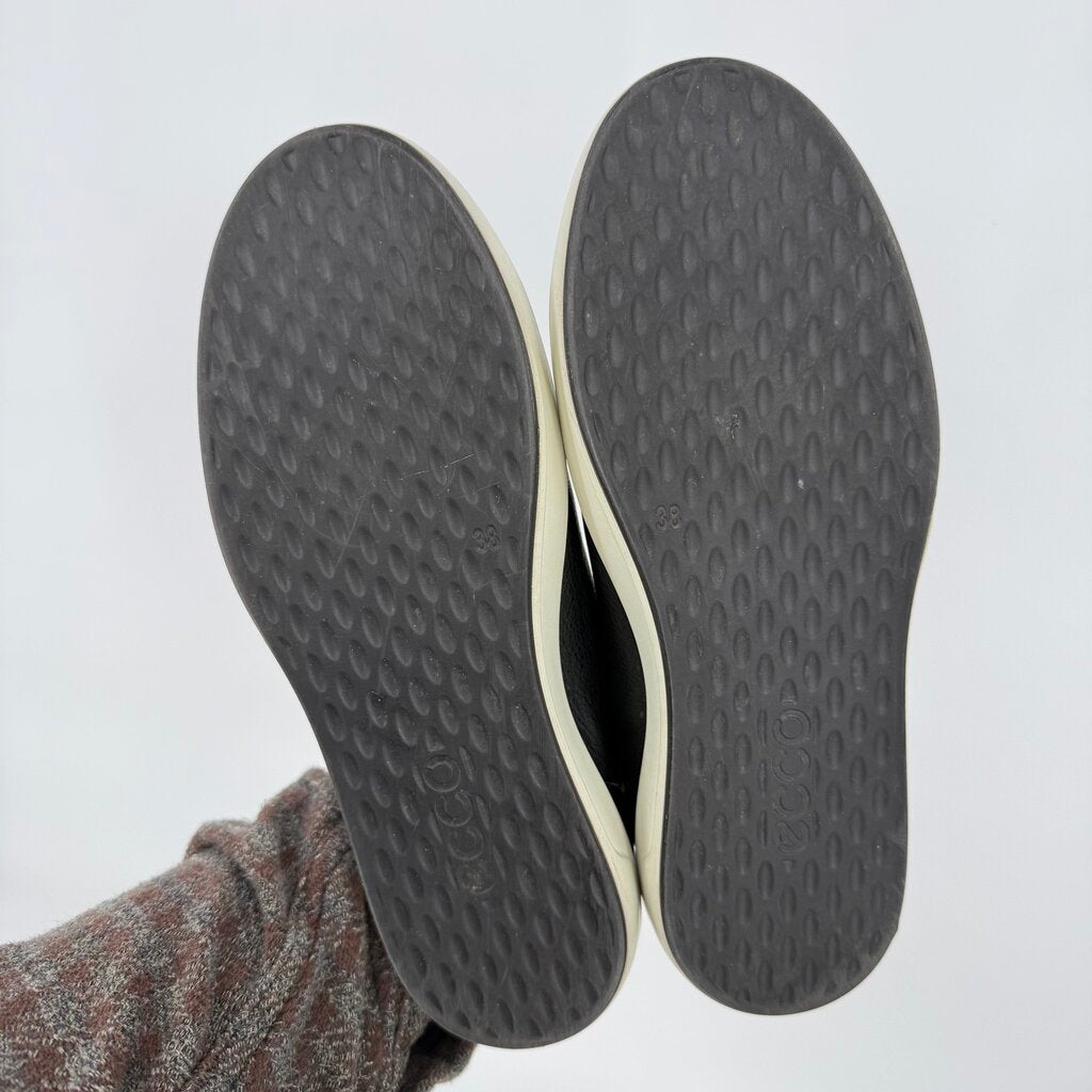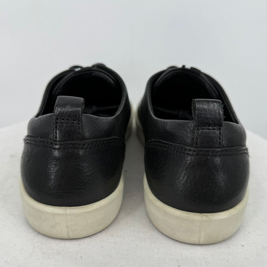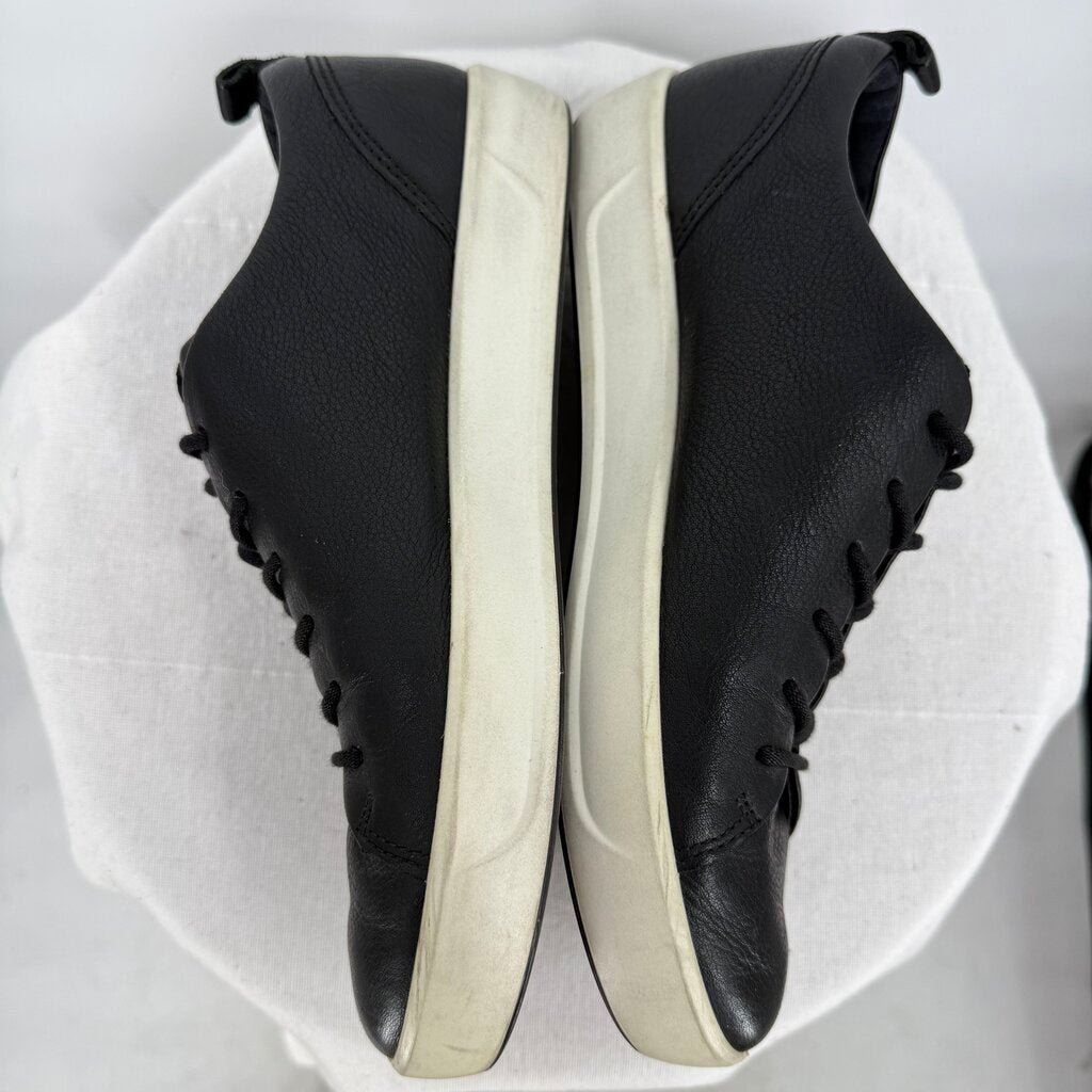 women Ecco Full Grain Leather Lace Up Sneaker Black Cream Shoes 7