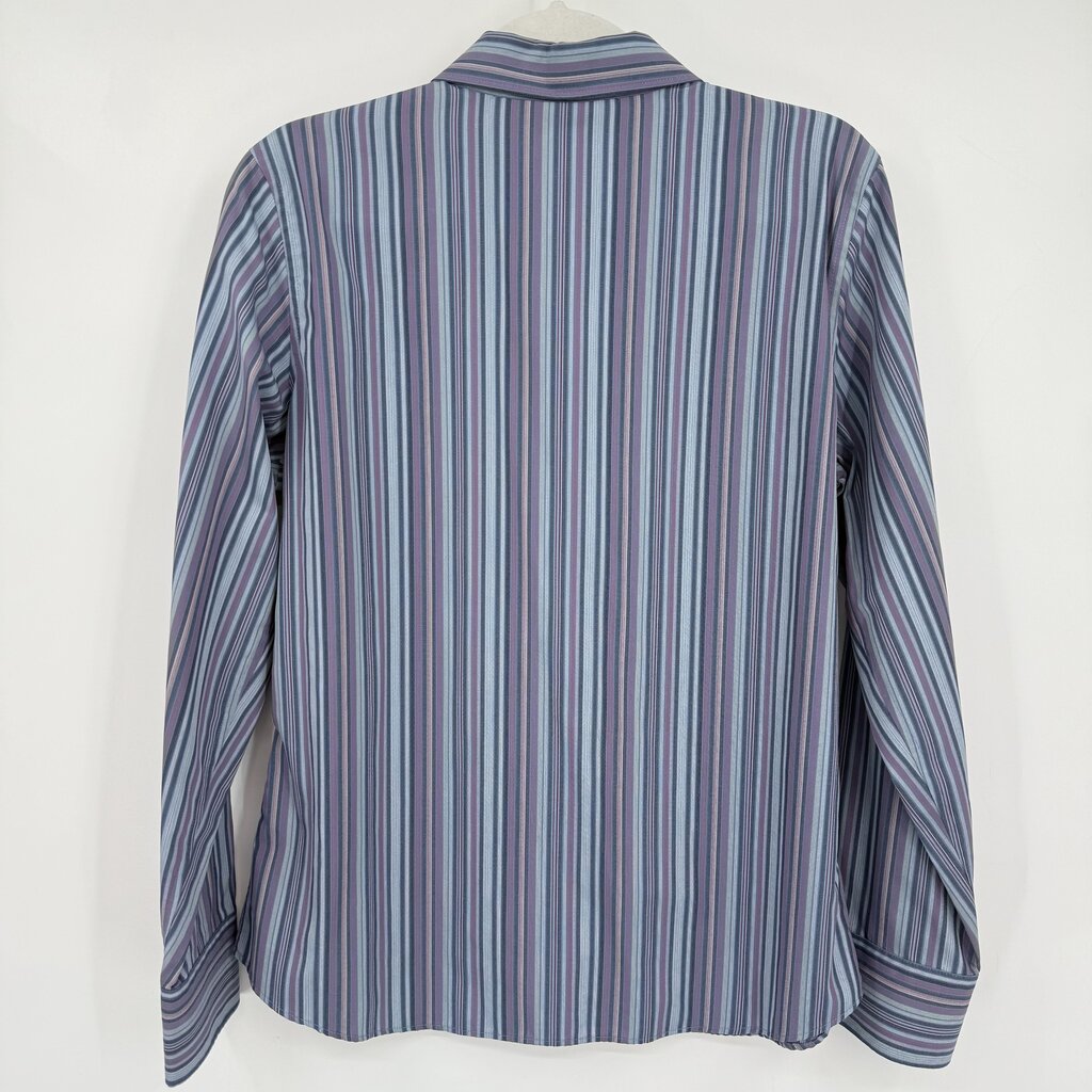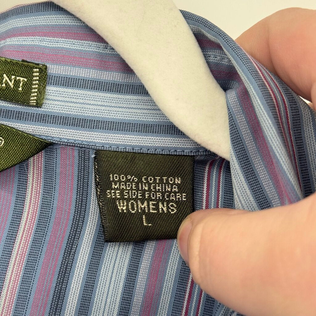 women Eddie Bauer Cotton Striped Button Front Powder Blue Lavender Woven Top L