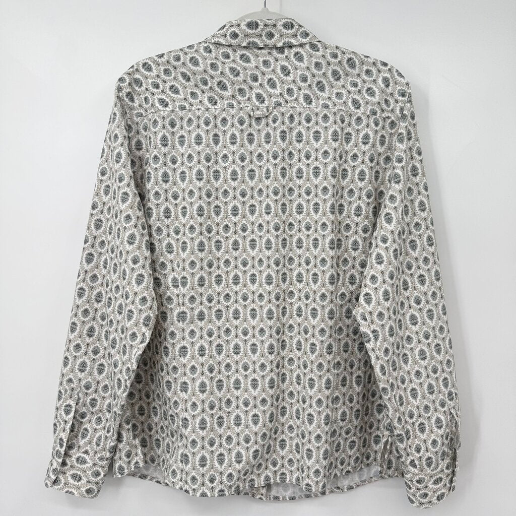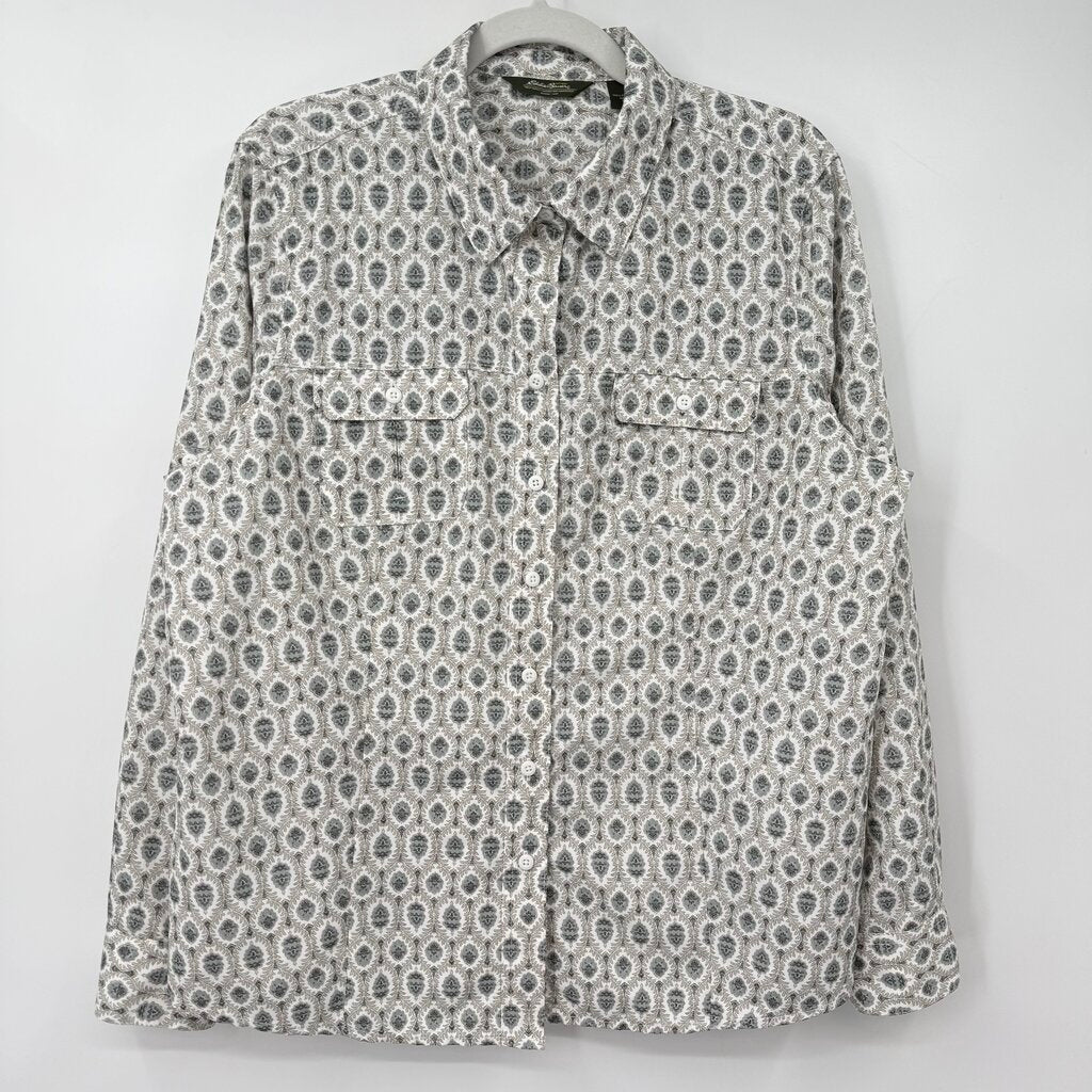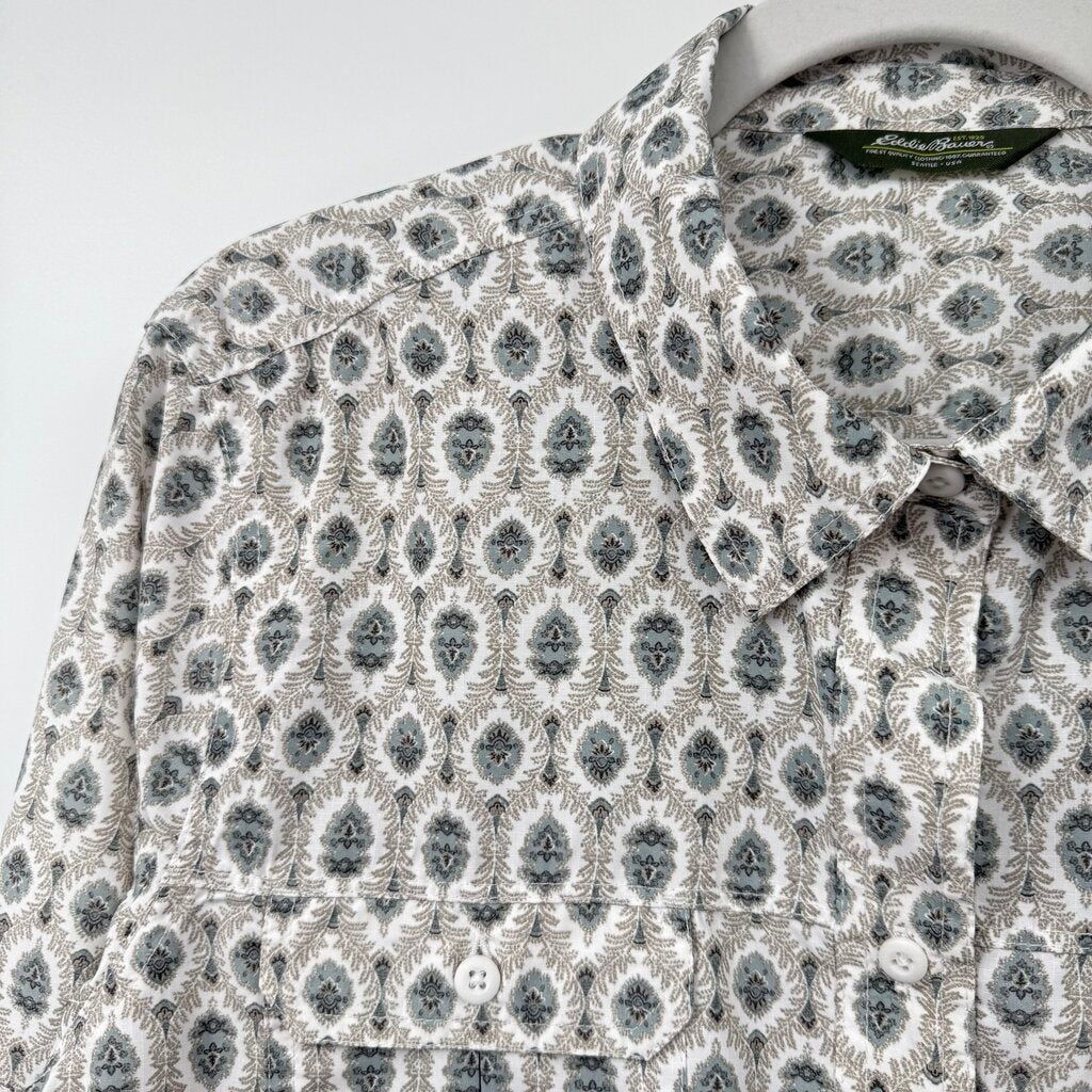 women Eddie Bauer Printed Button Front White Green Woven Top XL