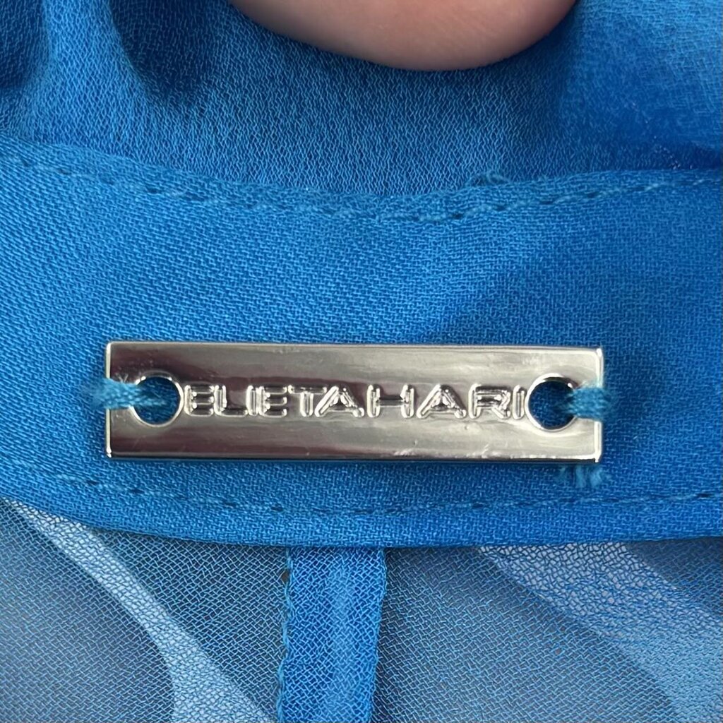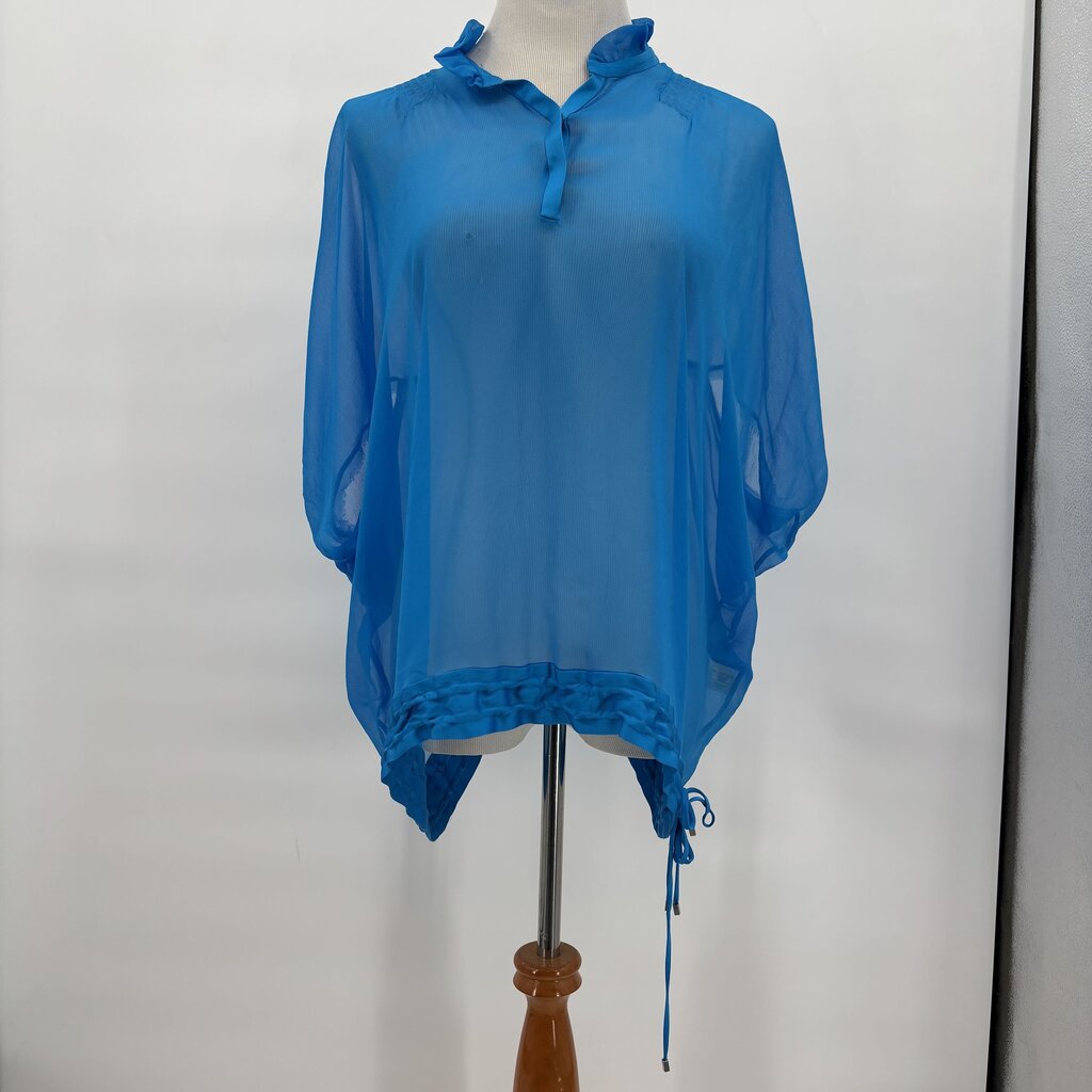 women Elie Tahari Sheer Silk Blue Woven Top L