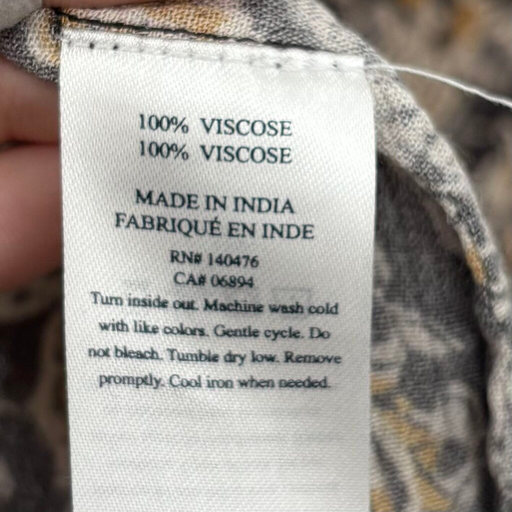 women Faherty Faith Ruffle Sleeveless Blouse in Leaf Batik MSRP $138 Gray Mustard Tan Woven Top L