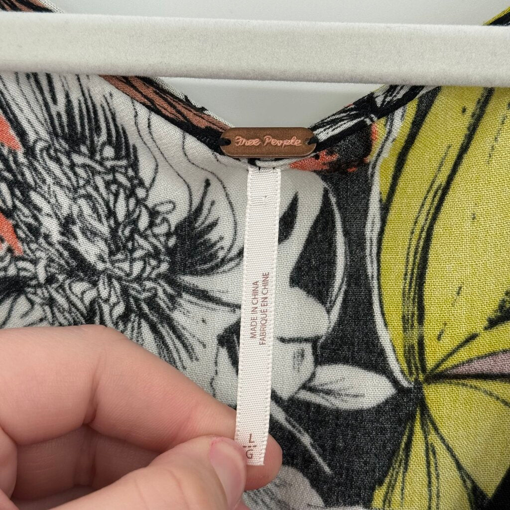 women Free People Long Sleeve Floral Tunic/Mini Black Woven Top L