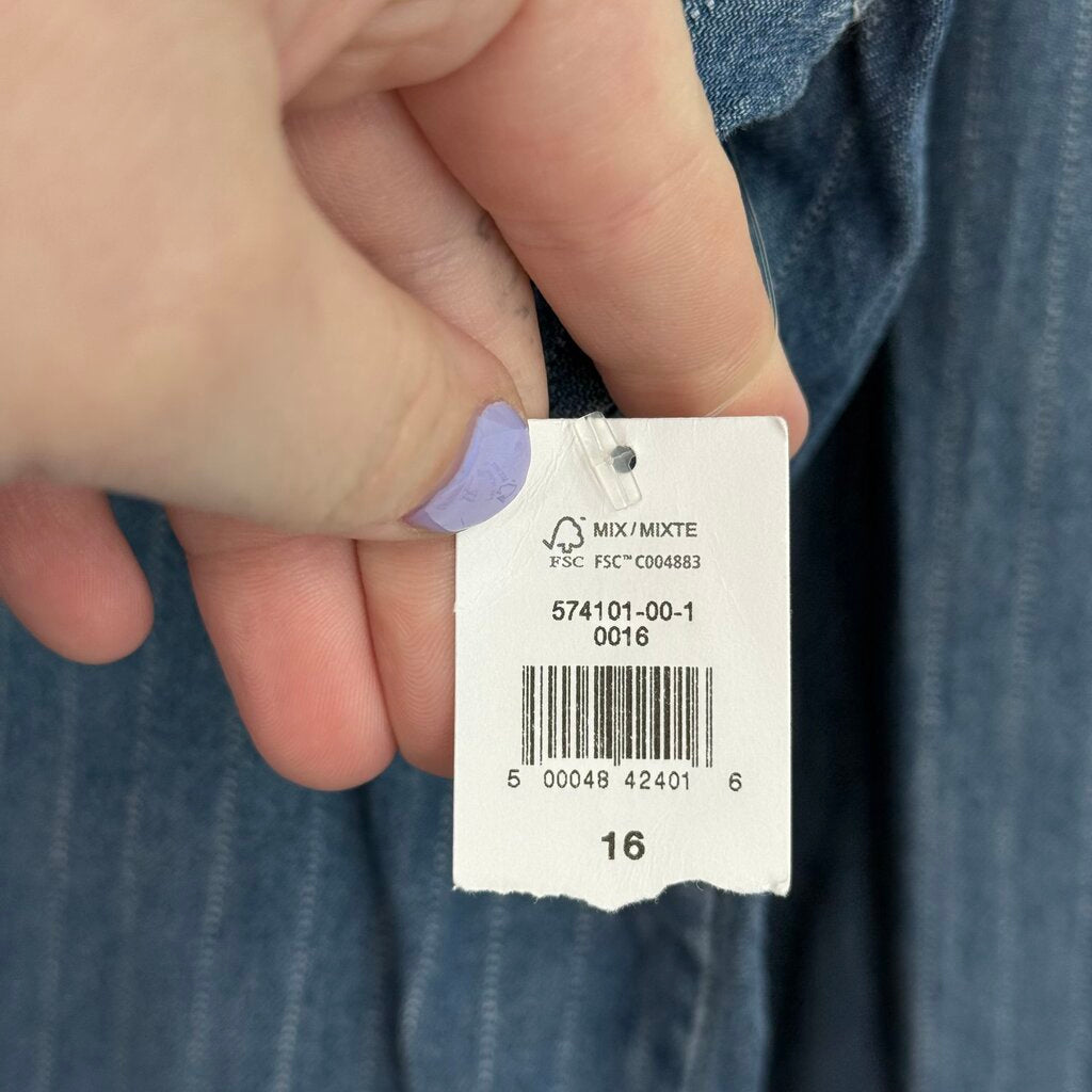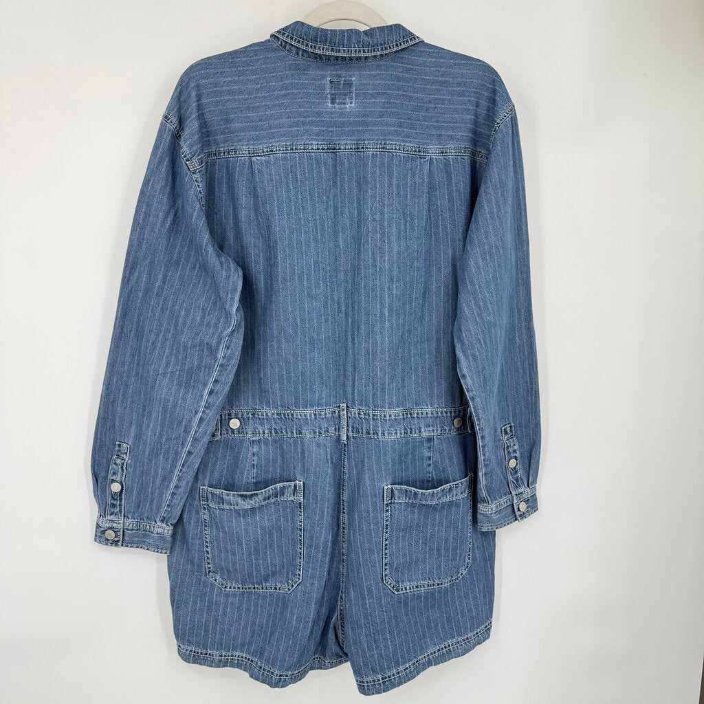 women Gap NWT Long Sleeve Utility Romper Blue Pintstripe Jumpsuit/Romper 16