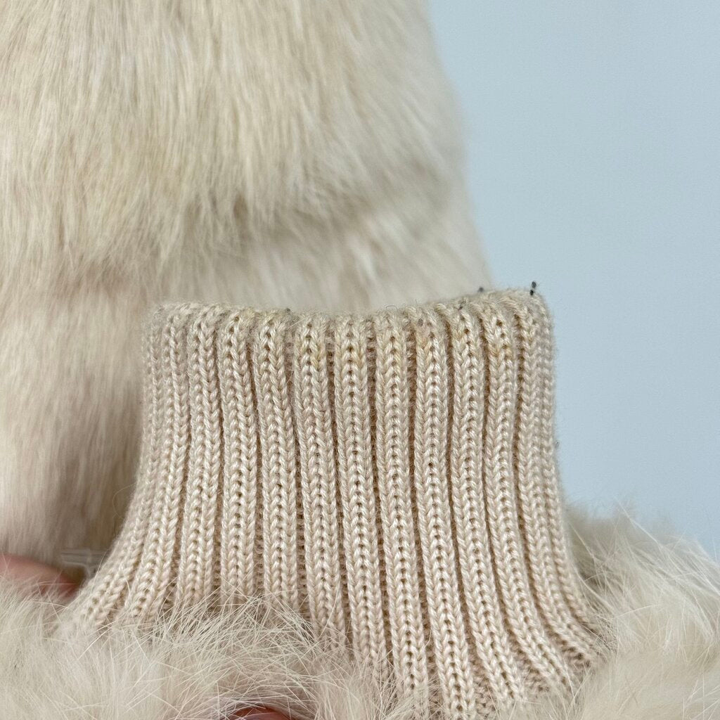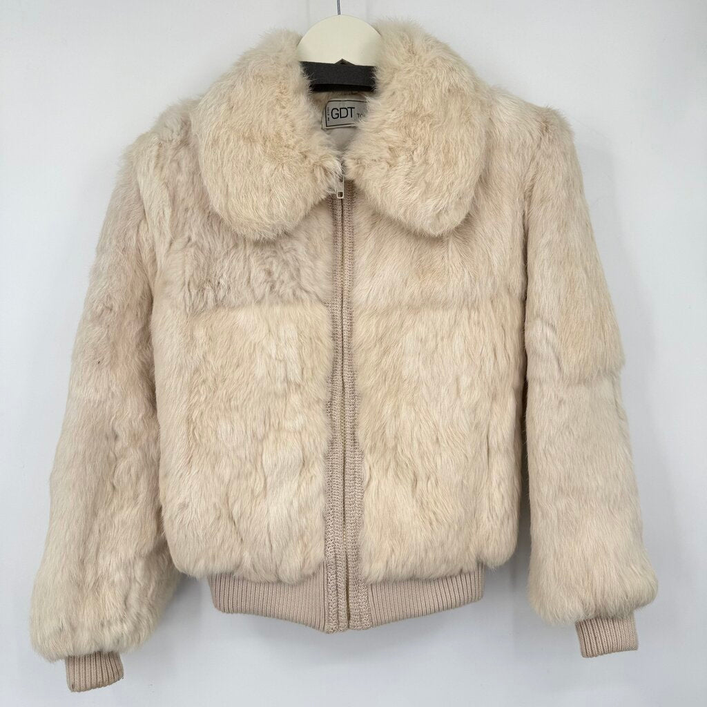 women GDT Too Vintage Rabbit Fur Bomber White Coat S