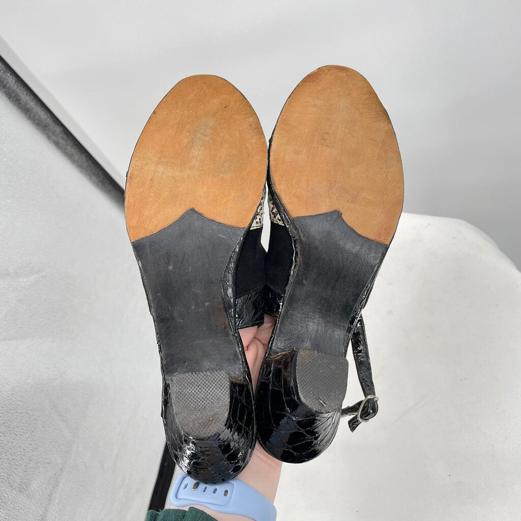 women Handmade Kid Leather and Python Slip-On Gray Black Cream Shoes 36.5/6
