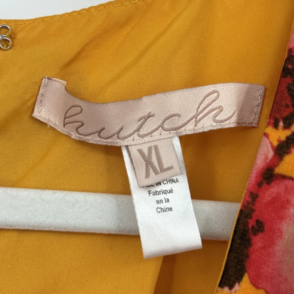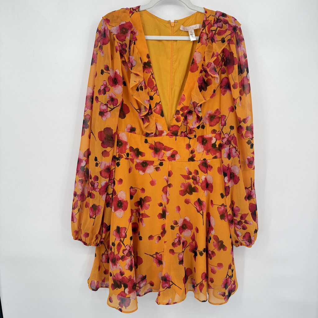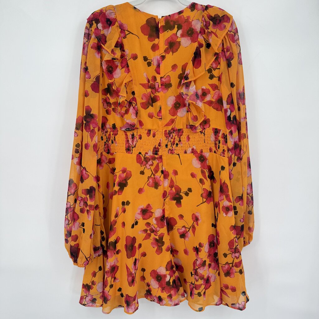Women's Hutch - Anthro Floral Orange and Pink Romper Extra Large XL Long sleeves, above the knee mini length, V-neck, ruffle accent. It looks like a dress but is a romper. Excellent used condition.