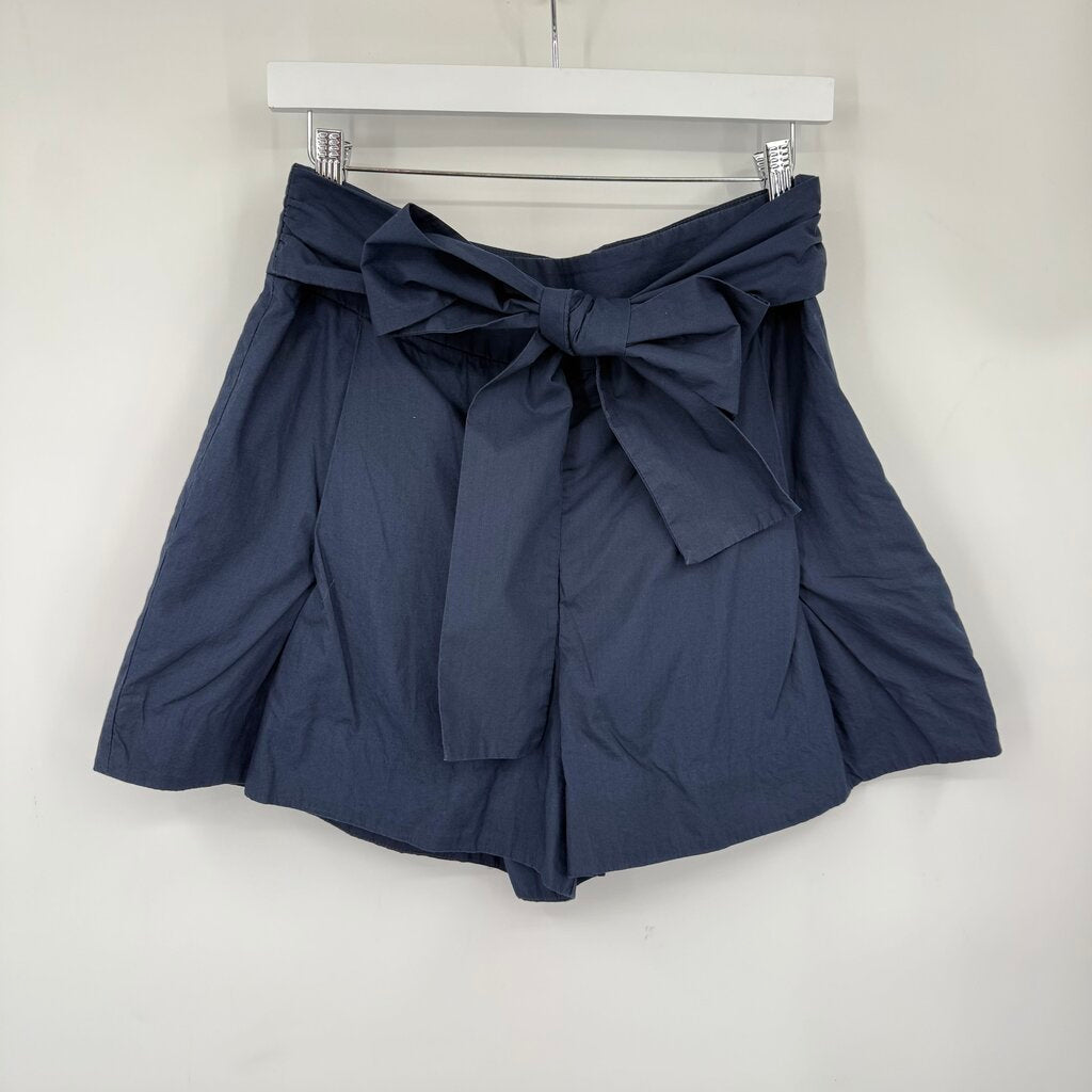 women J. Crew Tie Waist Cotton Poplin Navy Blue Shorts 8