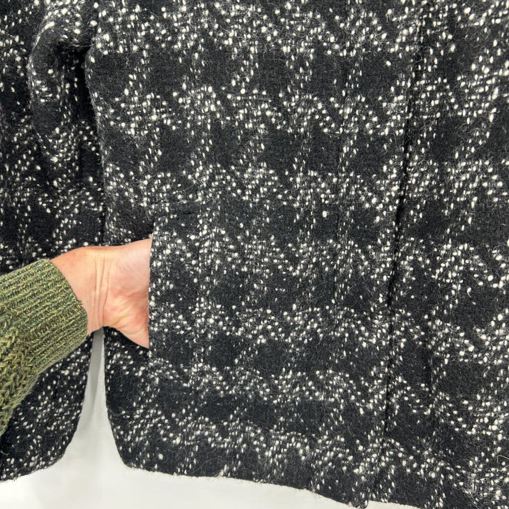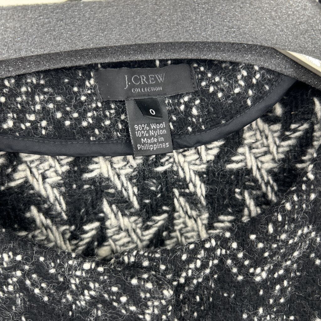 women J. Crew Zip Up Houndstooth Wool Tweed Black Jacket 0