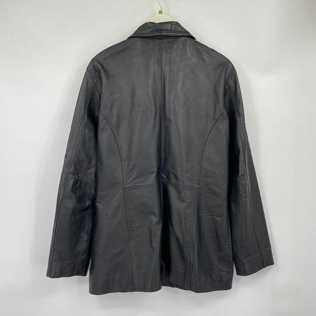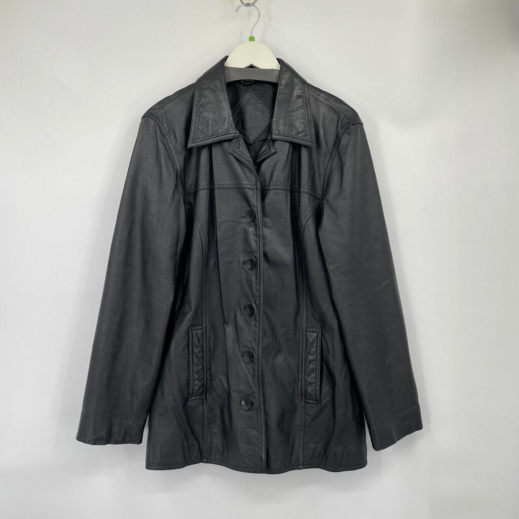 women Jacqueline Ferrar Genuine Leather Button Front Black Jacket LT