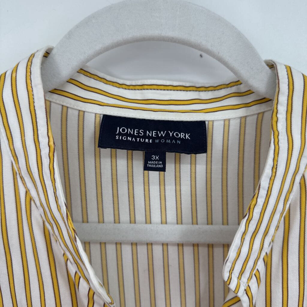 women Jones New York Cotton Striped White Yellow Black Woven Top 3X