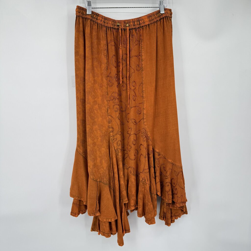 women Just Cruising Bohemian Midi Burnt Orange Skirt L/XL