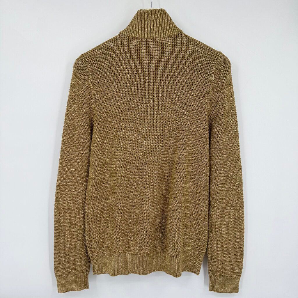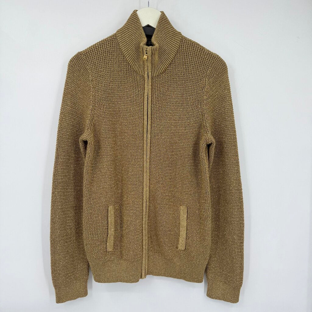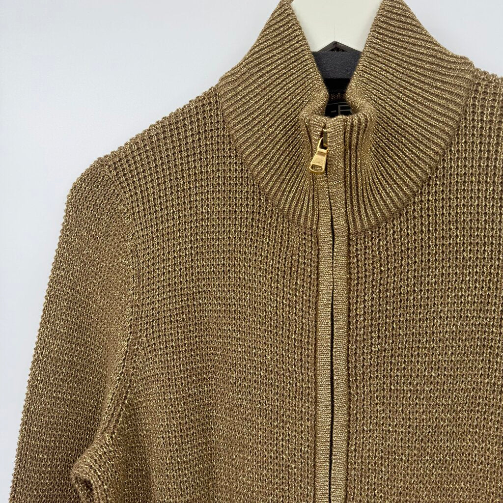 women Lauren Active Vintage 90s Zip Metallic Cardigan Gold & Brown Sweater XL