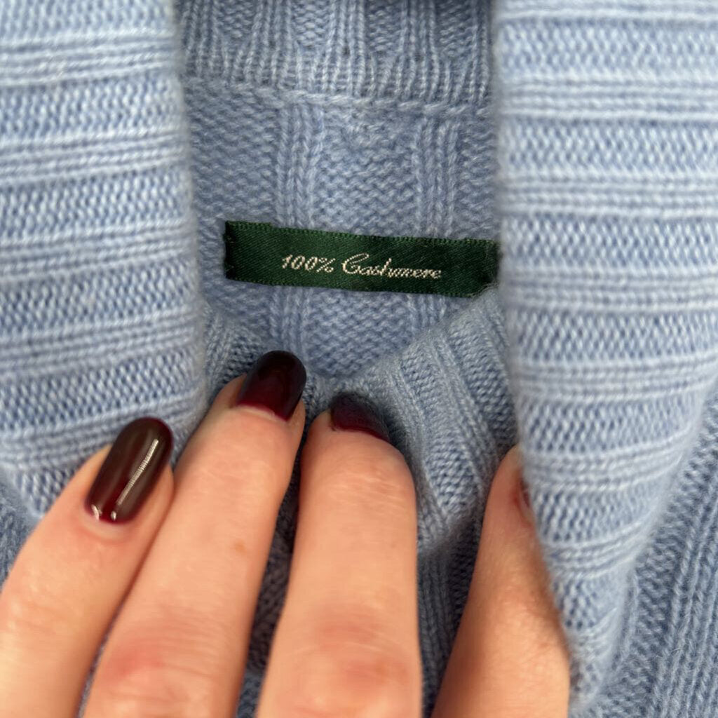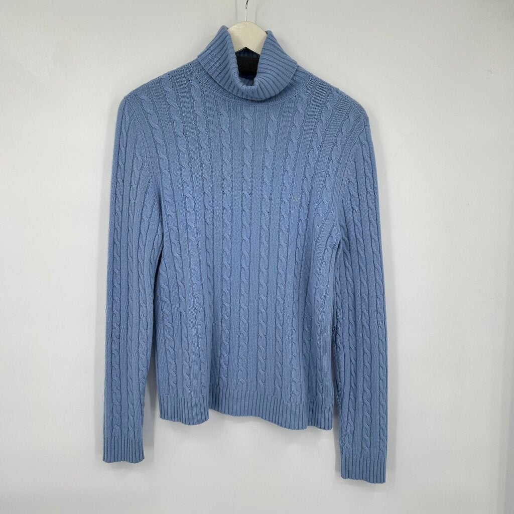 women Lauren Ralph Lauren Cashmere Cable Knit Turtleneck Light Blue Sweater S