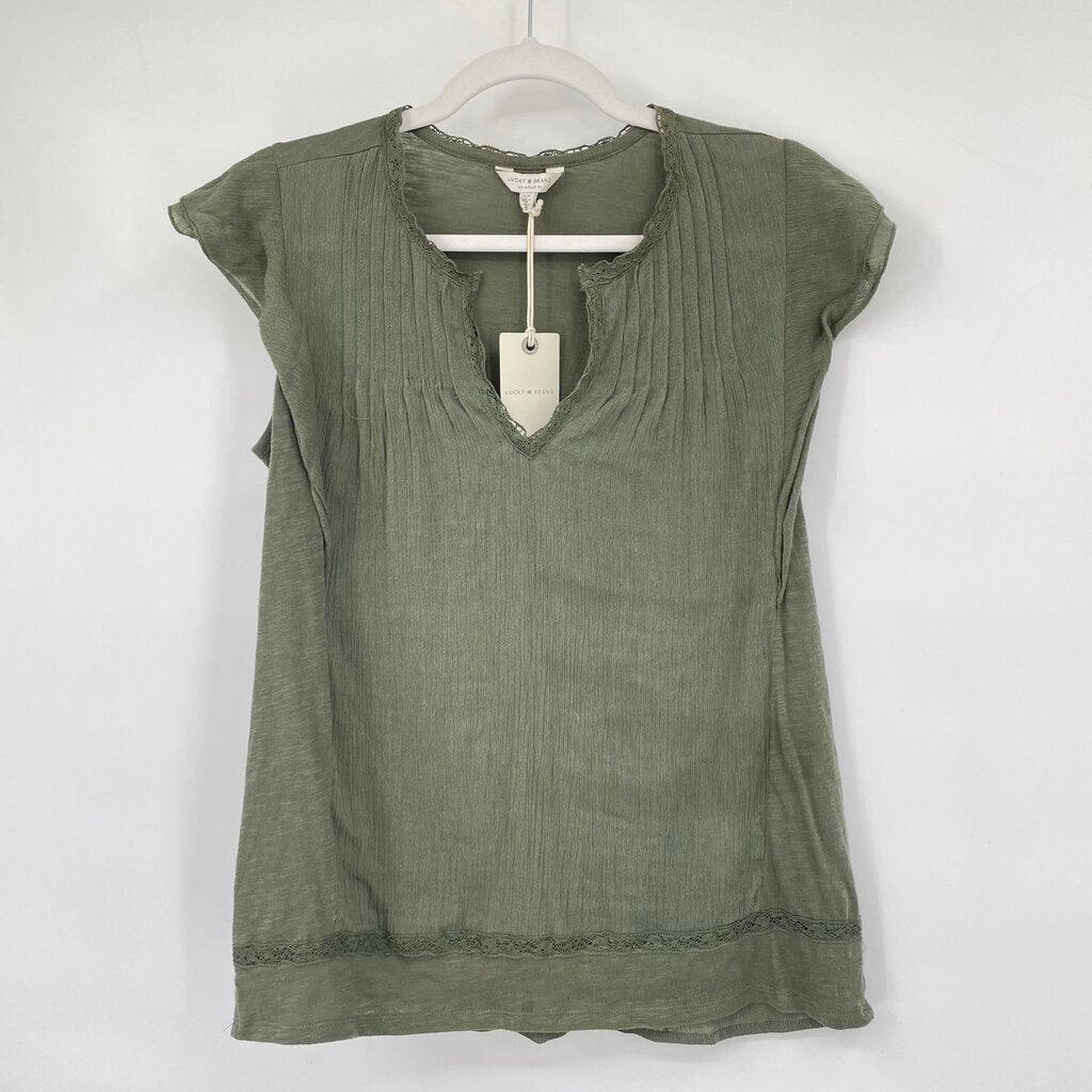 women Lucky Brand NWT Pleated Olive Green Knit Top S