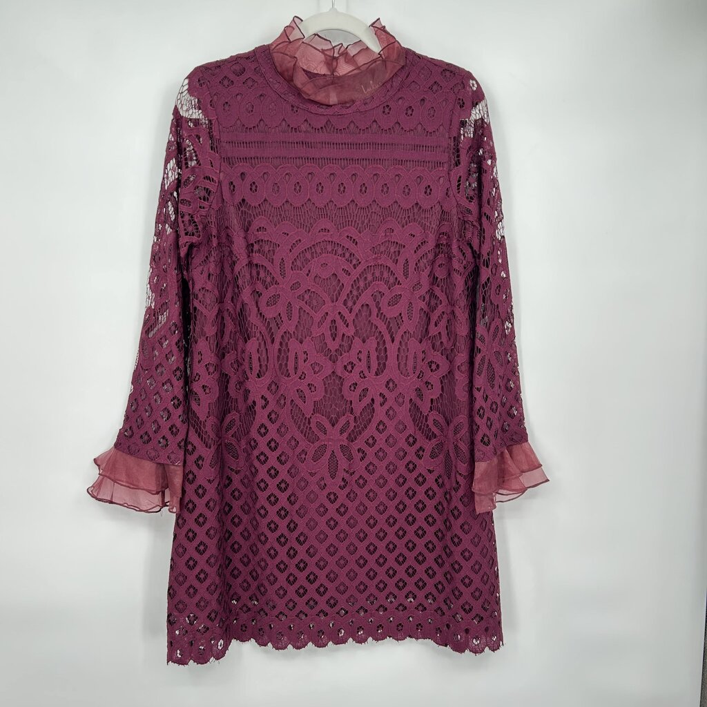 women Lulu's High Neck Lace Sheath Plum Dress M