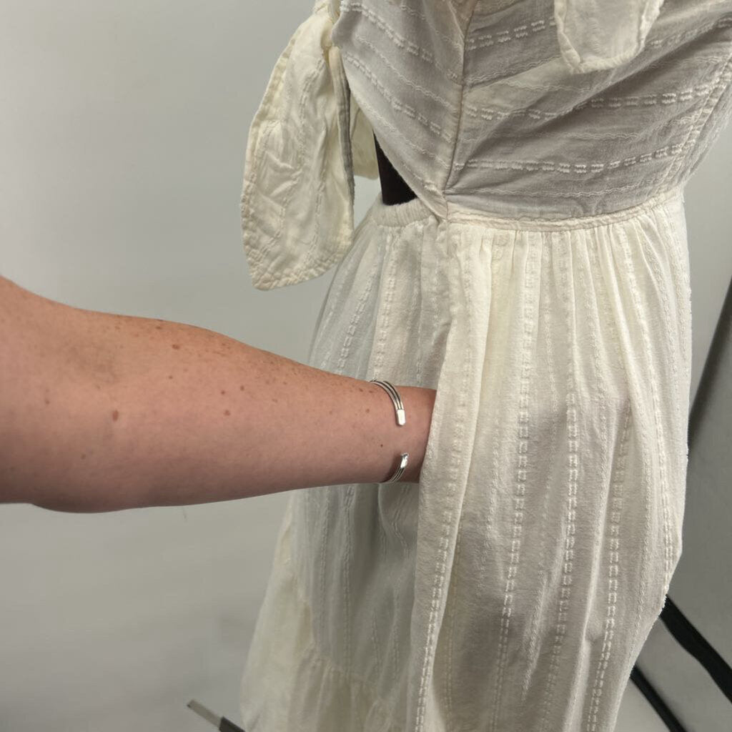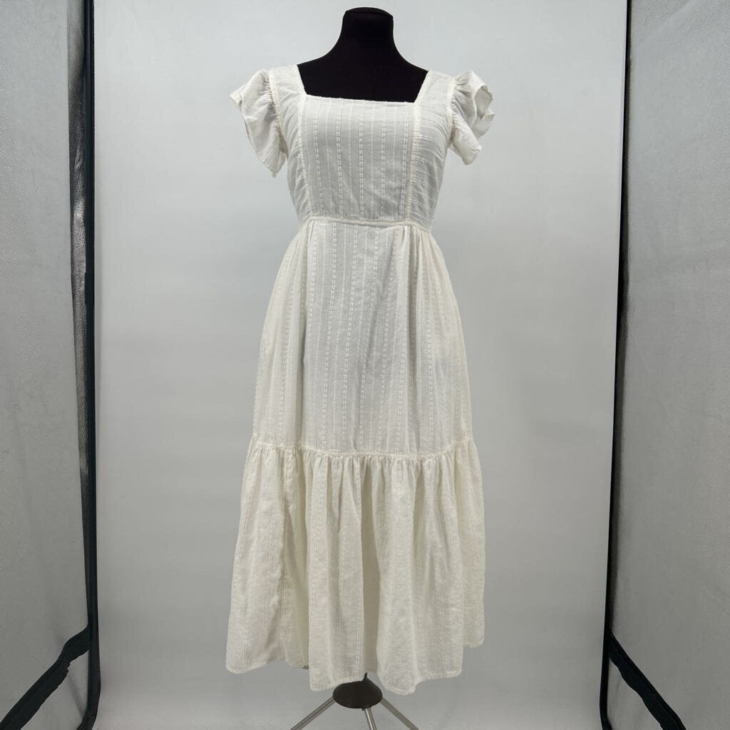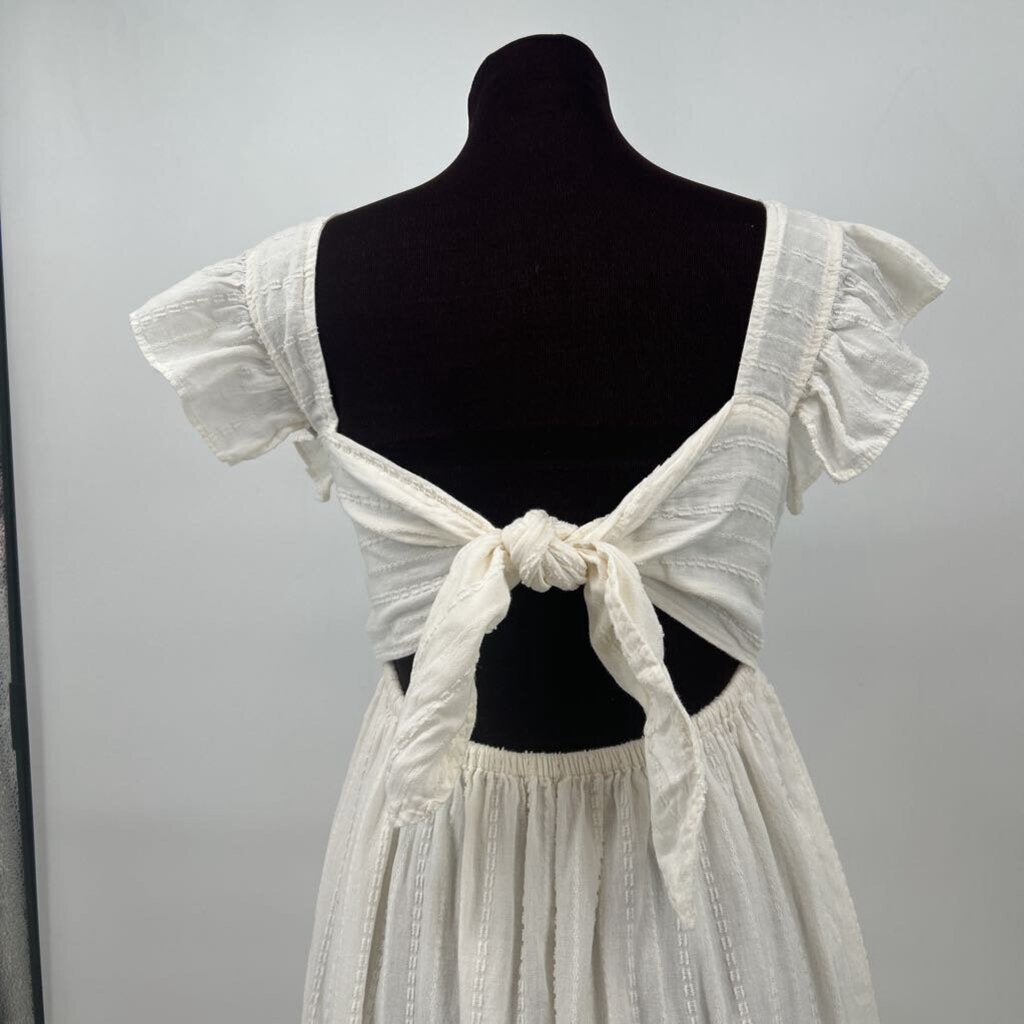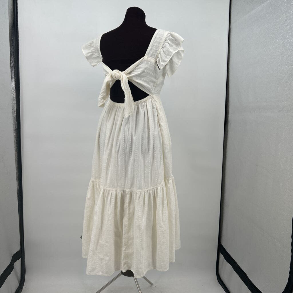 women Madewell Tie Back Flutter Sleeve Textured Midi Cream Dress S