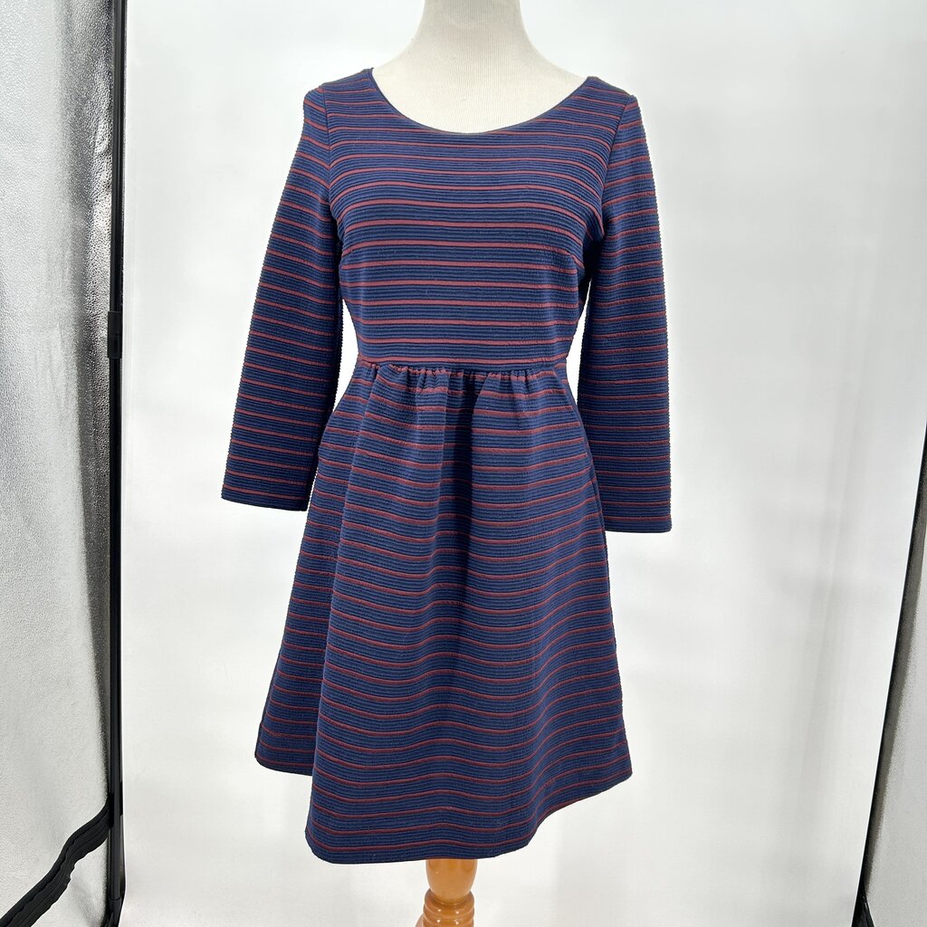 women Maeve - Anthro Brenna Jersey Knit Striped MSRP $128 Navy Rust Dress 8