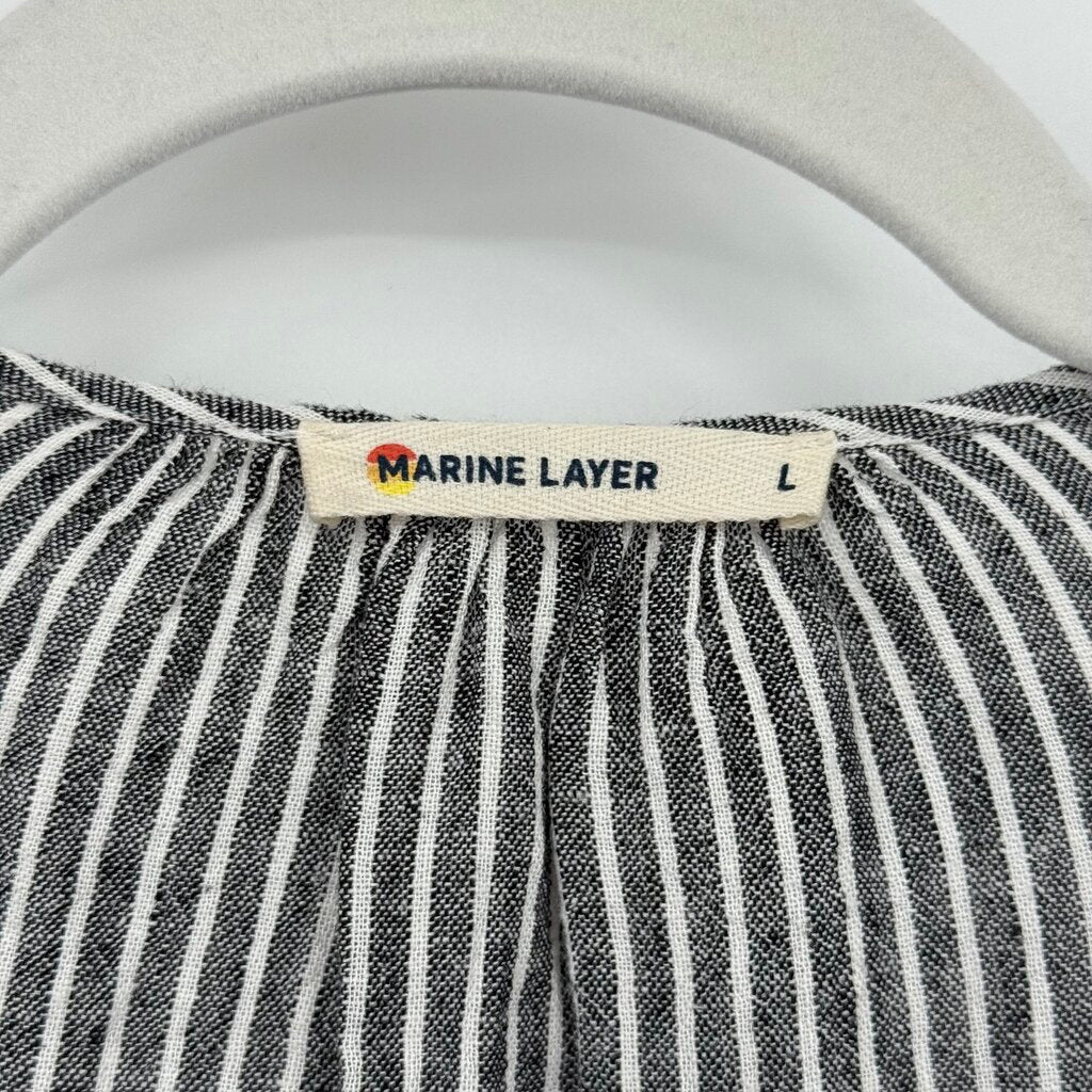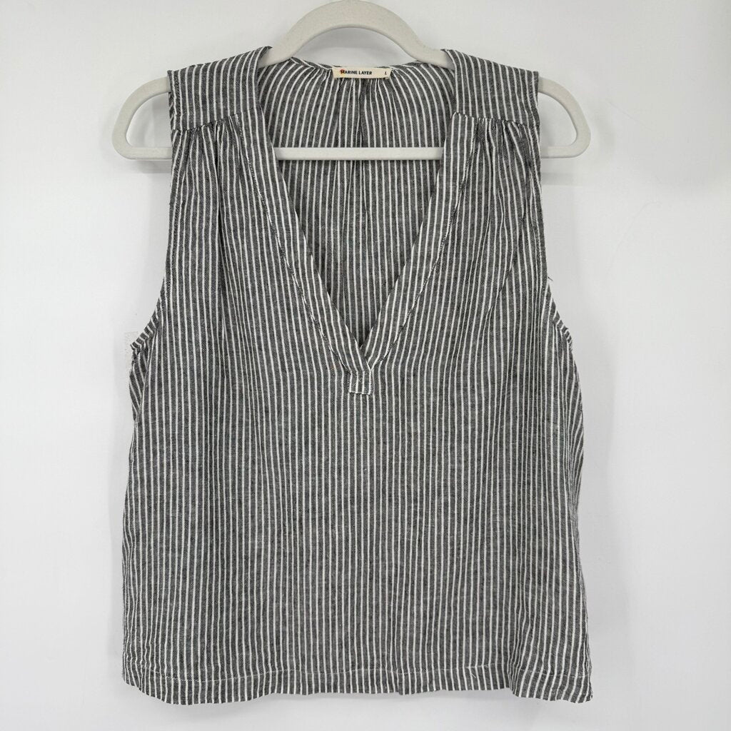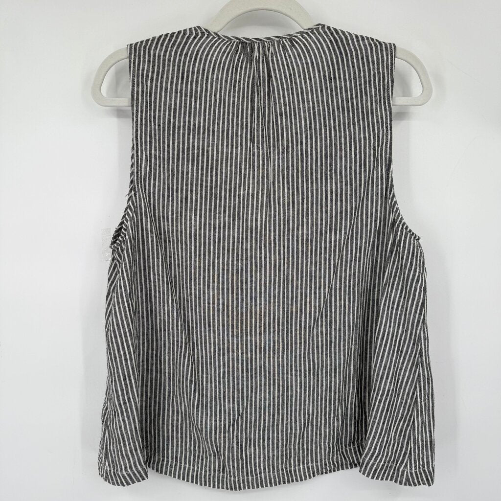 women Marine Layer Linen Blend Striped Sleeveless Gray and White Woven Top L