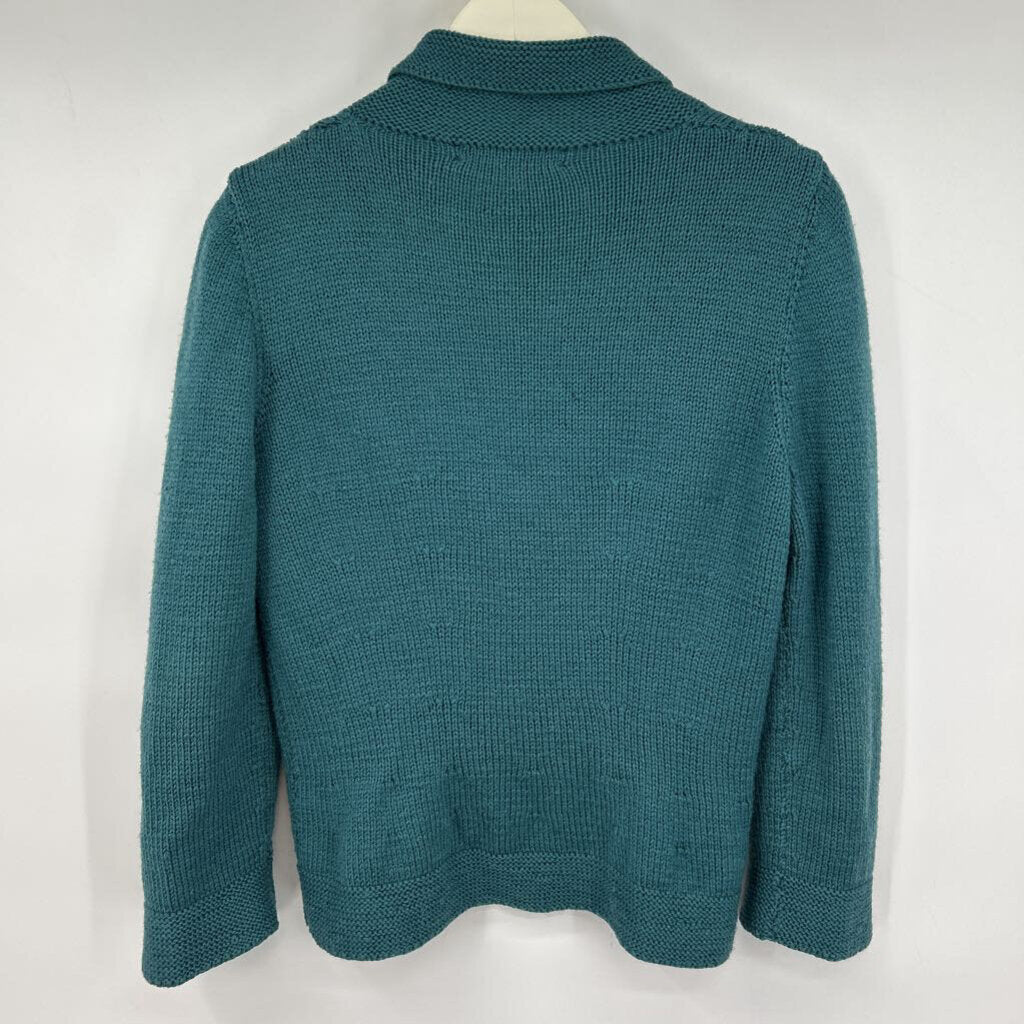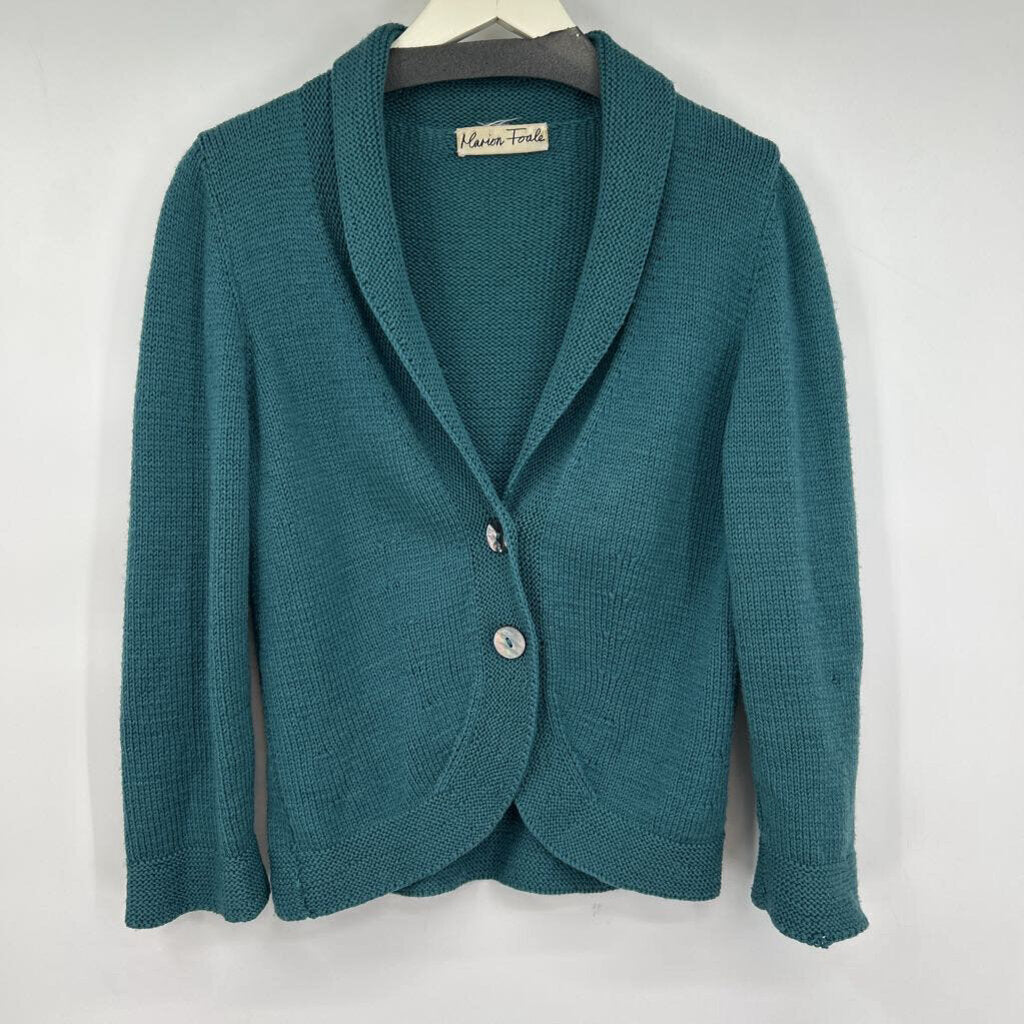 women Marion Foale 100% Wool Handknit Cardigan Teal Sweater M