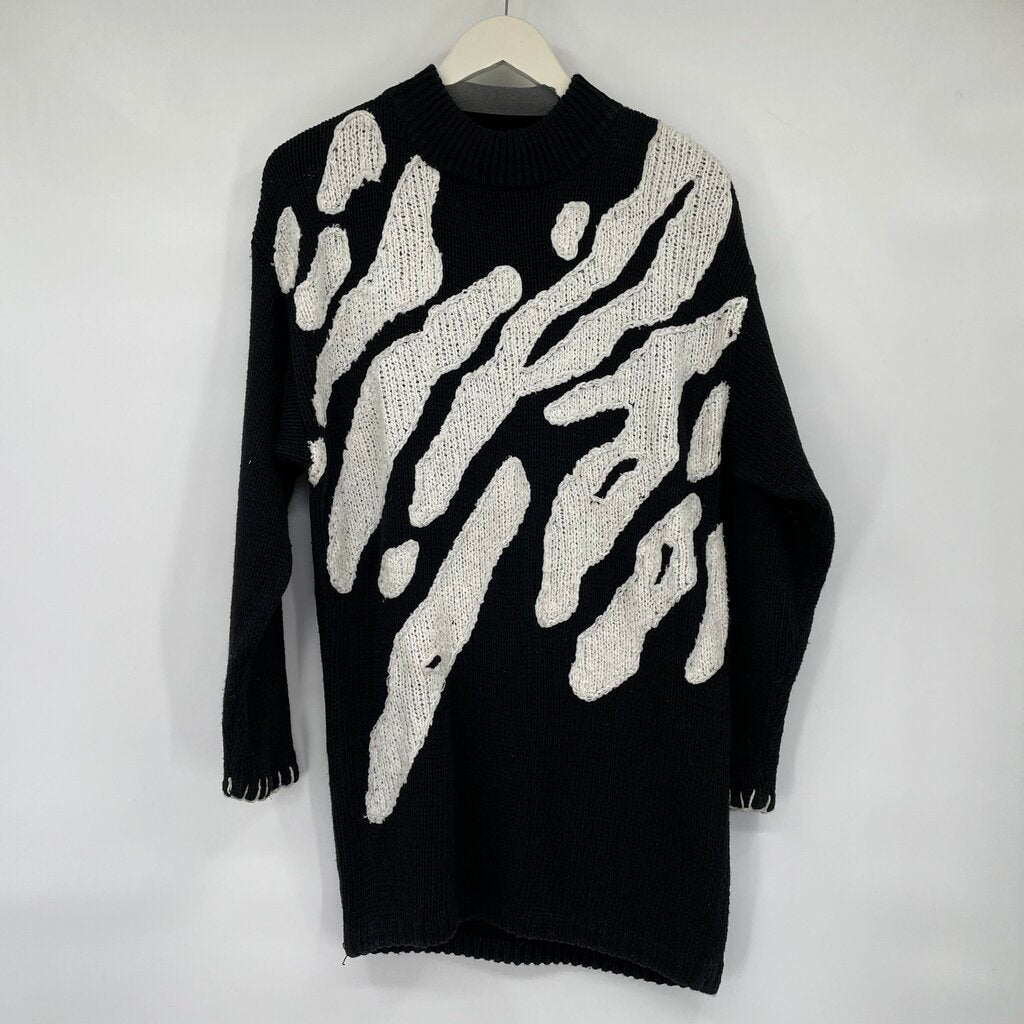women Marshall Rousso Vintage Abstract Knit Black White Sweater M