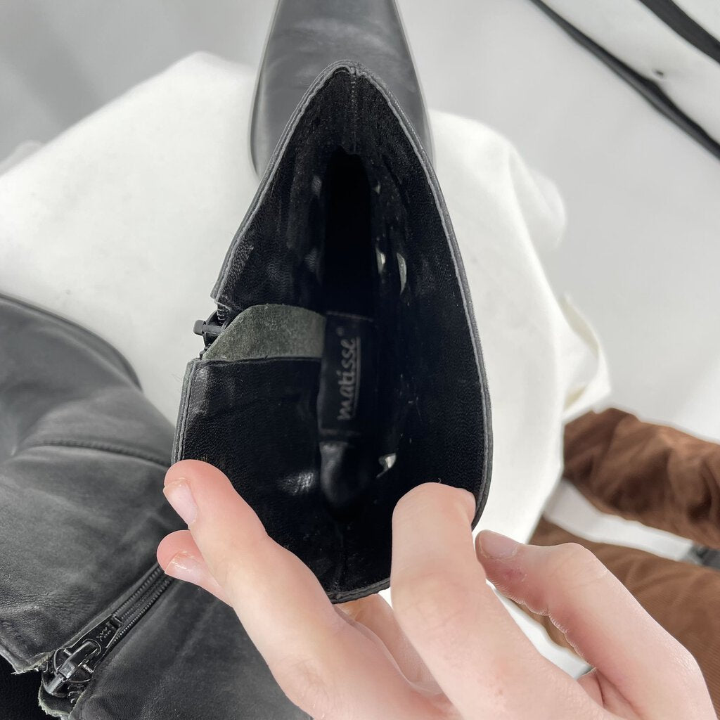 Matisse Black Keyhole Embroidered Ankle Boots 10M. Floral embroidered pattern paired with a 2.25 inch heel provides a good base and little bit of flair for any outfit. Square/snipped toe. Minor wear on toes, see pictures.
