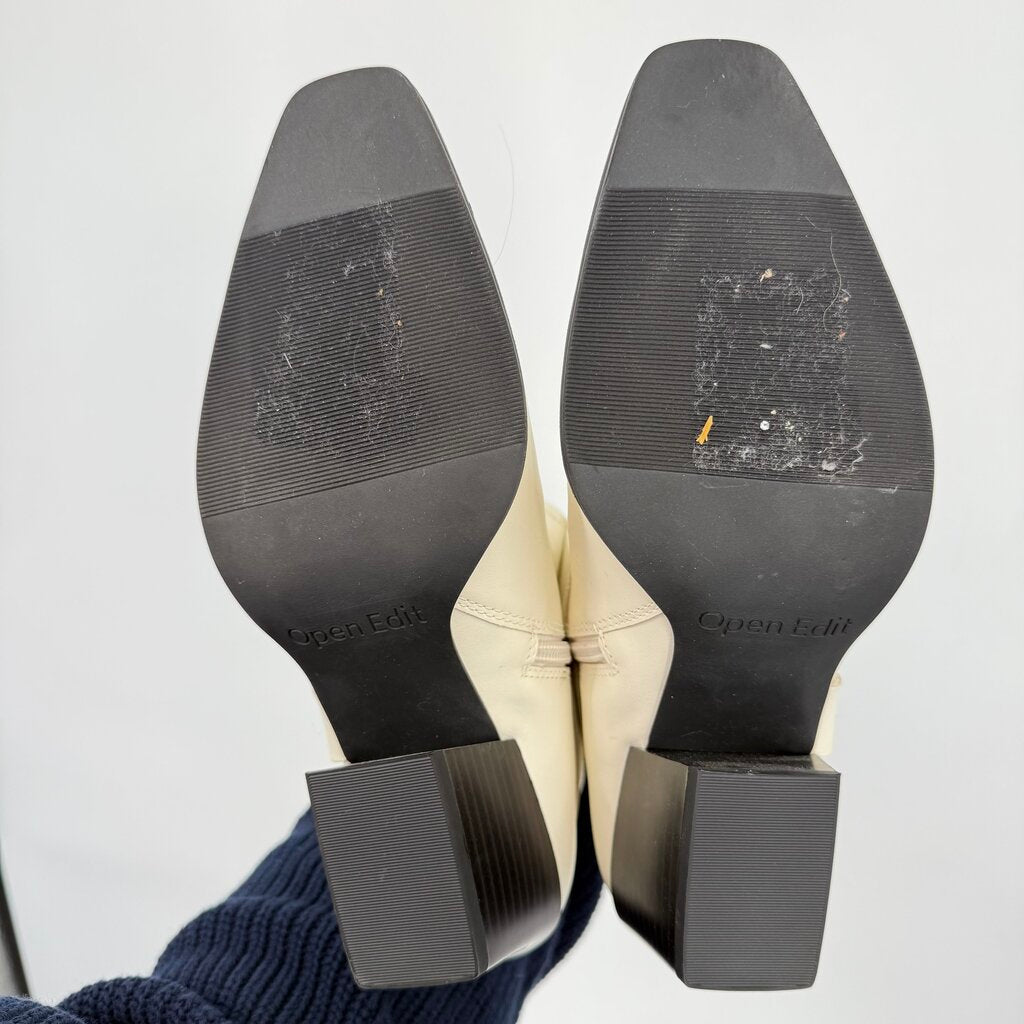 These stylish boots feature a western theme, making them perfect for travel, parties, or casual wear. The synthetic lining and insole, combined with a rubber outsole, provide comfort and durability. The unique side harness detail adds a trendy touch to these versatile boots from the trusted brand Open Edit. Like new, appear unworn.
